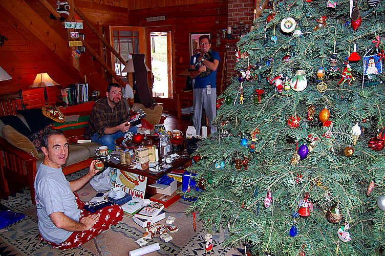 » Christmas morning: Michael, Andy W, and Andy H (with Sophia) high on shredded giftwrap