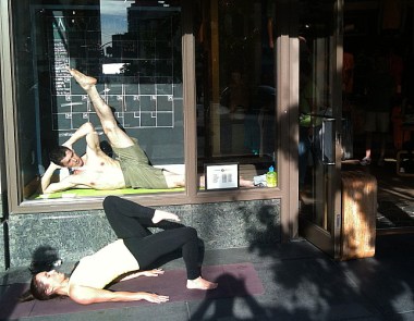vogueing in the window at Lululemon on Broadway (yoga realness)