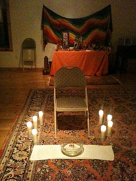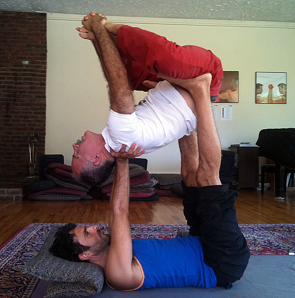 here's me receiving a sample of Tula Yoga from Louka -- all about balancing and letting go while hanging upside down from his feet