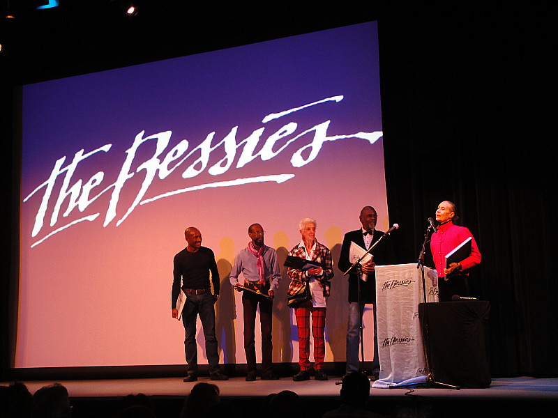 The Bessies didn't happen last year, for various (mostly fiscal) reasons, so this year they played catch-up by citing 6 shows from the 2008-2009 season and 6 from the 2009-2010 season. Those awards were given to everyone involved in the show. Plus there were 7 awards given to performers, two of which were for multiple performers, one of which was the final award of the night given to Paradigm, the group of legendary veteran dancers pictured here: (from right) Carmen deLavallade, Gus Solomons Jr., Valda Setterfield, Dudley Williams, and Michael Blake. (not pictured: Hope Clarke and Keith Sabado)