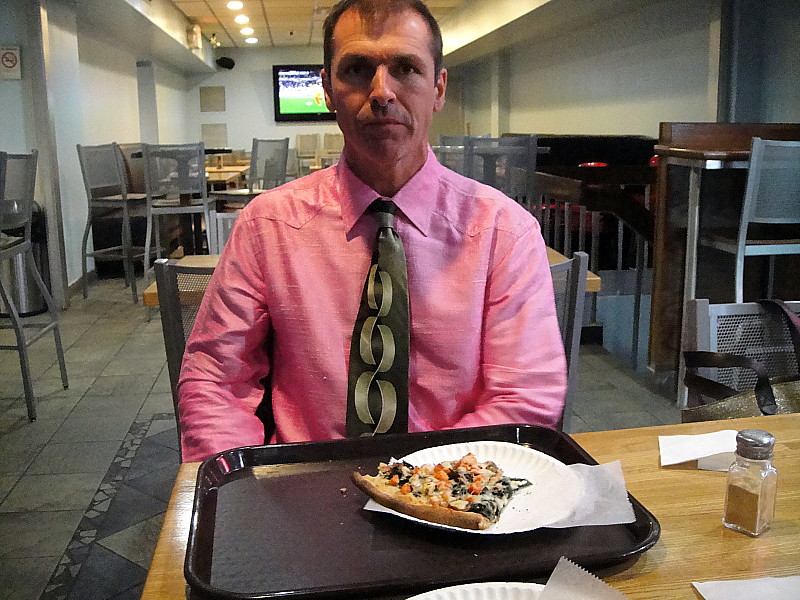 We stopped for a piece of pizza on our way to the awards. Keith was wearing his pink cowboy shirt handmade in Bangkok.