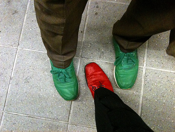 He wore his brown suit with bright green shoes. I wore my handmade Italian wool three-piece navy pinstriped suit with my red faux-horsehair shoes from Daffy's. We took the subway.