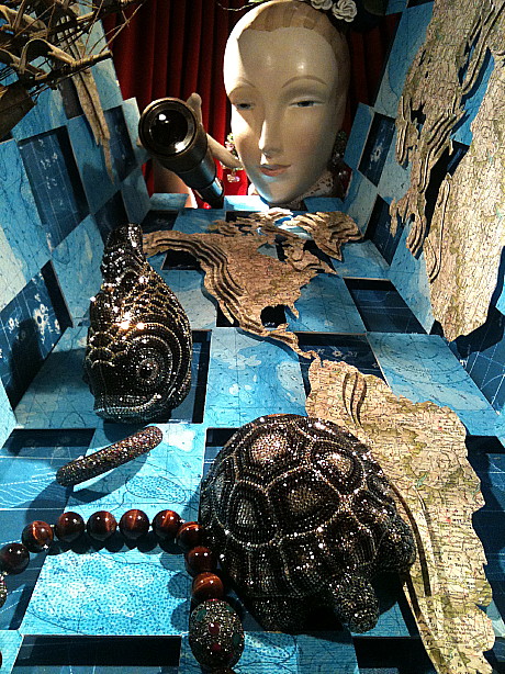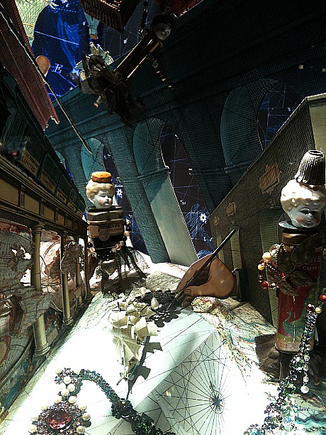 Bergdorf’s has the most beautiful, dense, hallucinatory, creative windows of all stores in New York City. And the windows queens really knock themselves out when it comes to the holiday season. The current theme is “Wish You Were Here.”