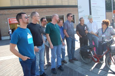 judging from her mechanical delivery, Luciana has given this tour hundreds of times -- she had the disconcerting habit of beginning each spiel with "Ladies and gentlemen...." The first time she said it, she looked around and realized there were no ladies in our group -- but she didn't bother to edit herself after that.when we got back to Bologna, the Festival of San Petronio (the city's patron saint) was in full swing -- in Piazza Maggiore, Roman connected with his pen pal, Mauricio, to watch the fireworks