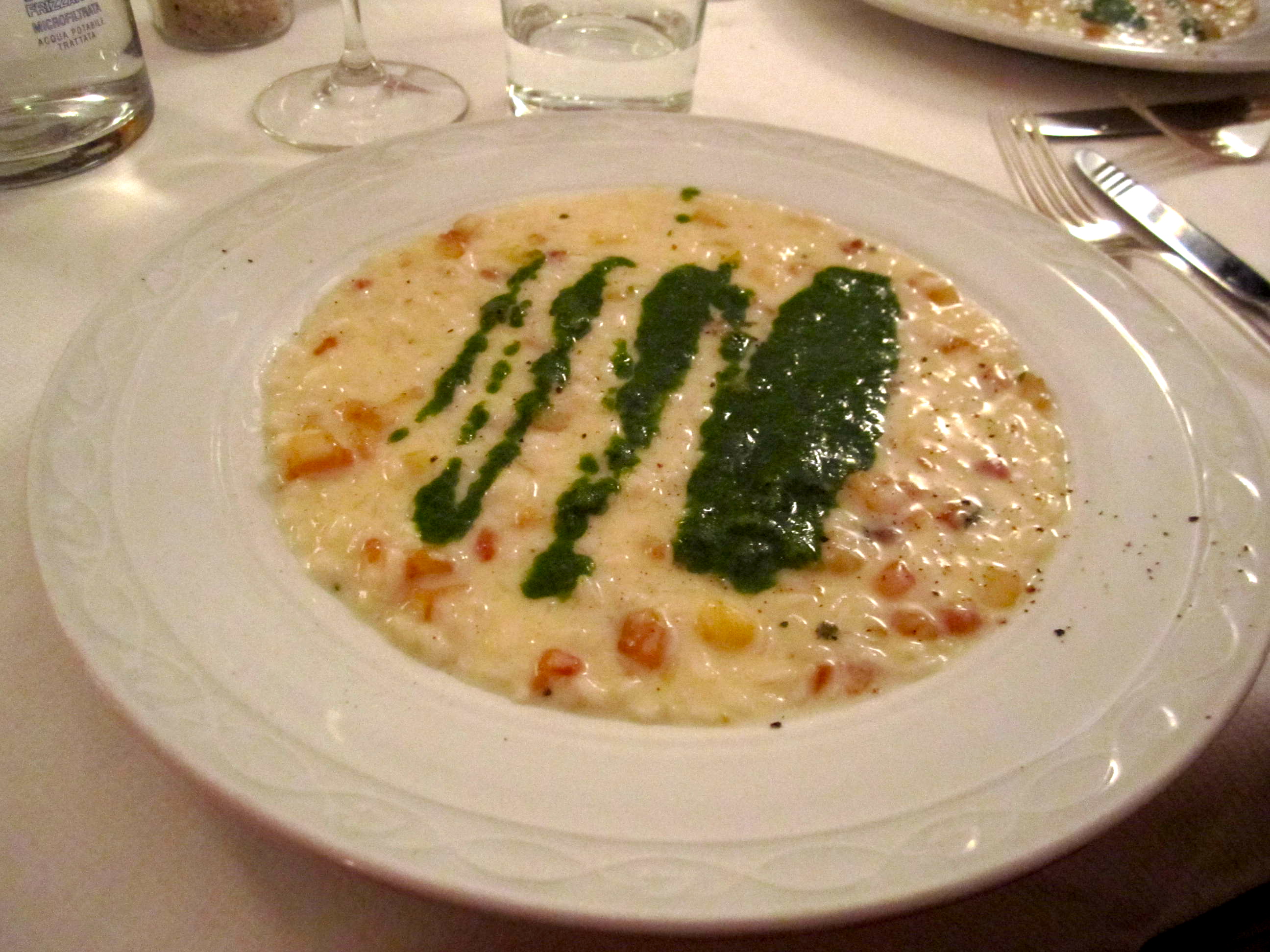 but the piece de resistance was an outrageous creamy risotto with speck and pesto
