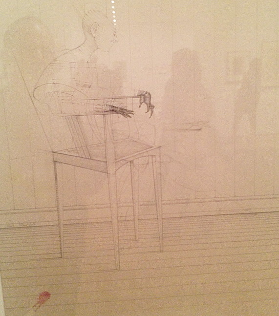 The “Exquisite Corpse” show has very little to do with the Surrealist-spawned parlor game among artists and a lot to do with artistic rendering of body distortions. I encountered some intriguing artists new to me (Andre Racz, above is his “The Flesh Fly”) and surprising pieces by old favorites (a fascinating multimedia collage by Jean Cocteau, below).