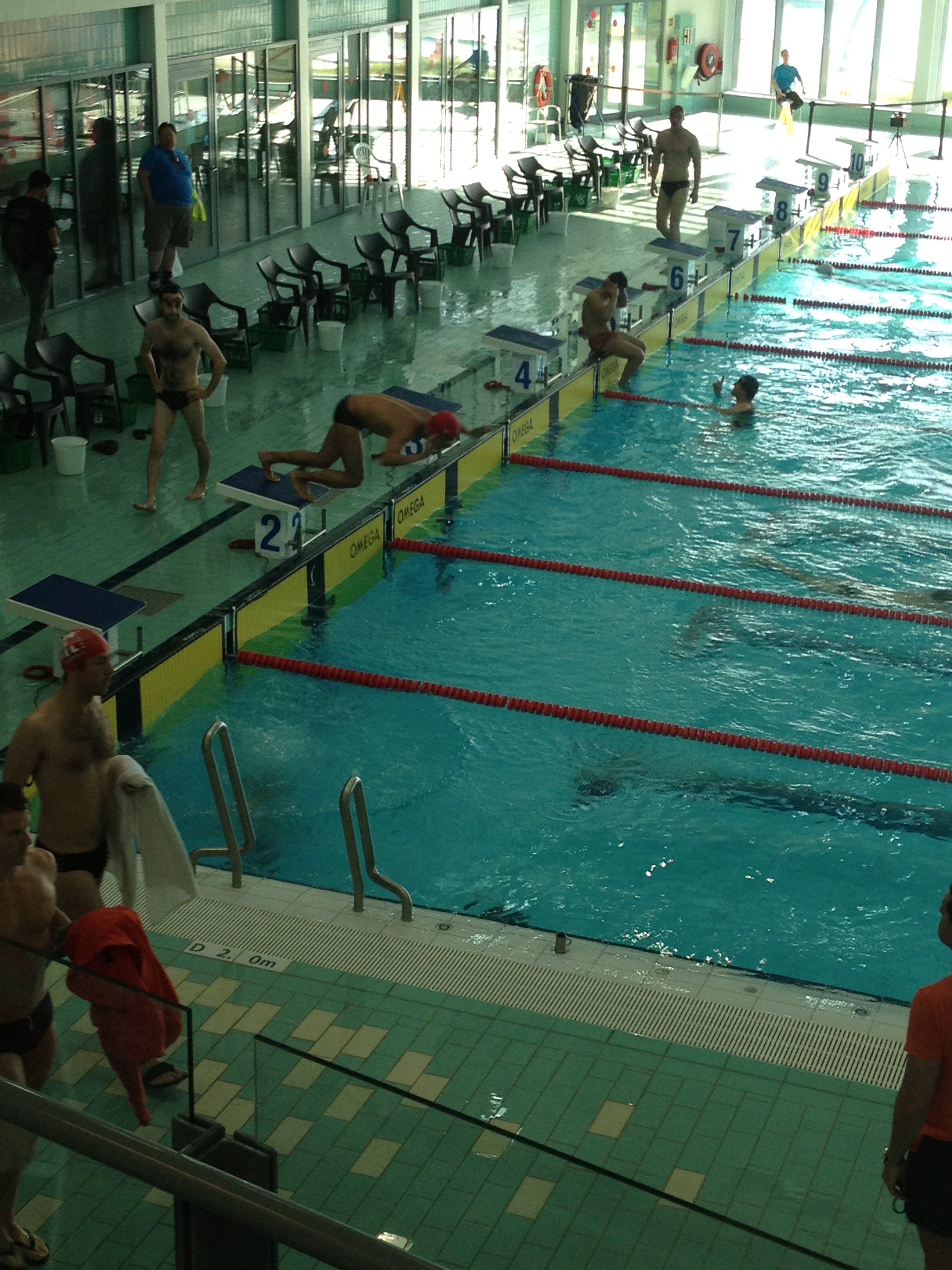Friday morning, Andy had a long-course swim first thing (800-meter freestyle). Afterwards, we piled into the car with Brad, Jim, and Fede.