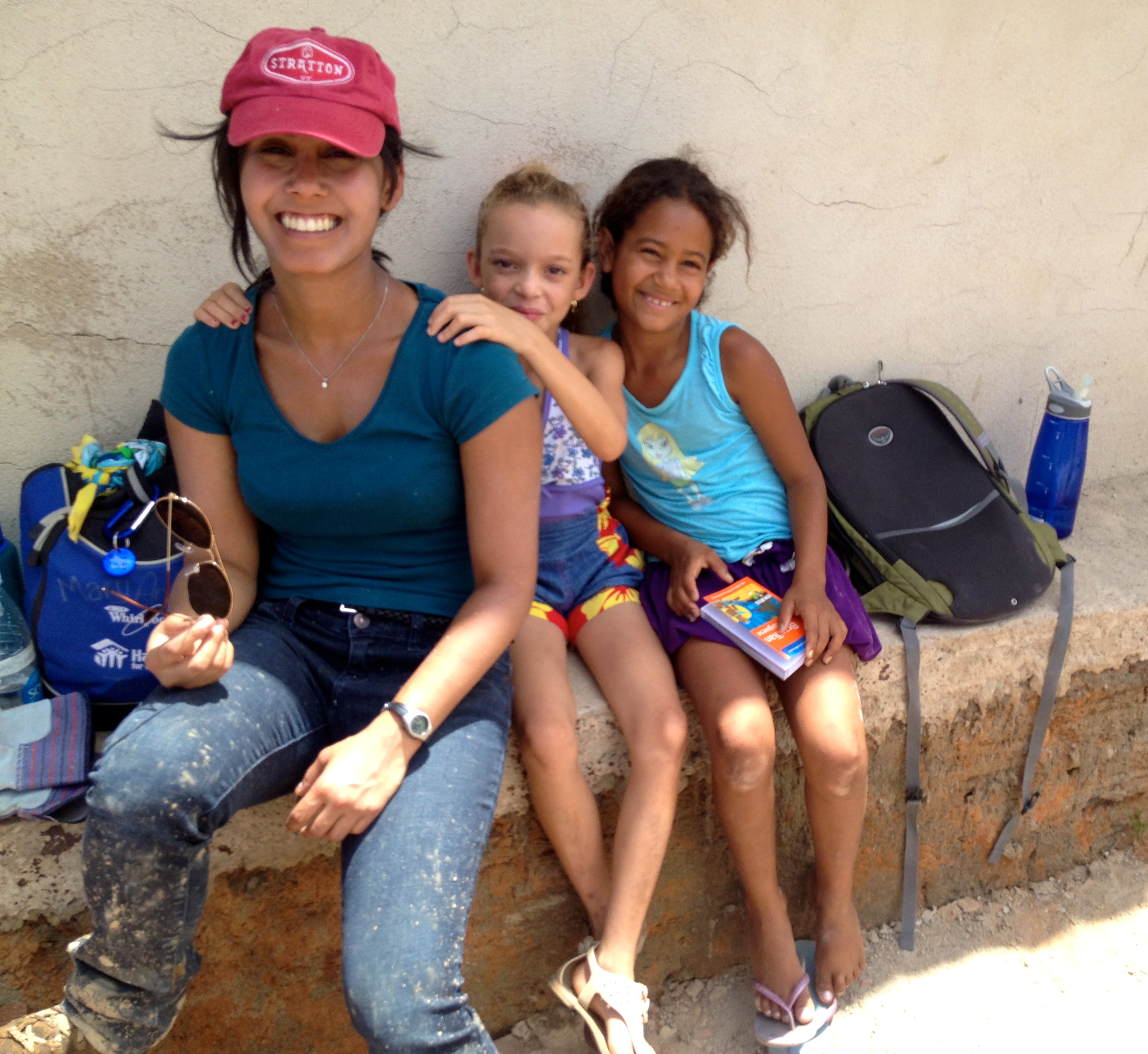 None of the professional masons on the job speak any English, so we were at the mercy of Helena, our local coordinator, or the rudimentary Portuguese that some of the team members have. Nothing was really explained about how we would work. We just pitched in willy-nilly, shoveling sand and gravel into wheelbarrows and dumping them into two designated dirt pits; helping open the bags of cement and spreading them around; adding water and mixing; then shoveling the mixture into wheelbarrows and pushing them up planks to dump it wherever the masons directed.