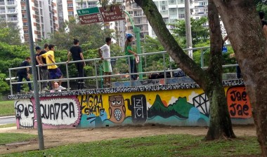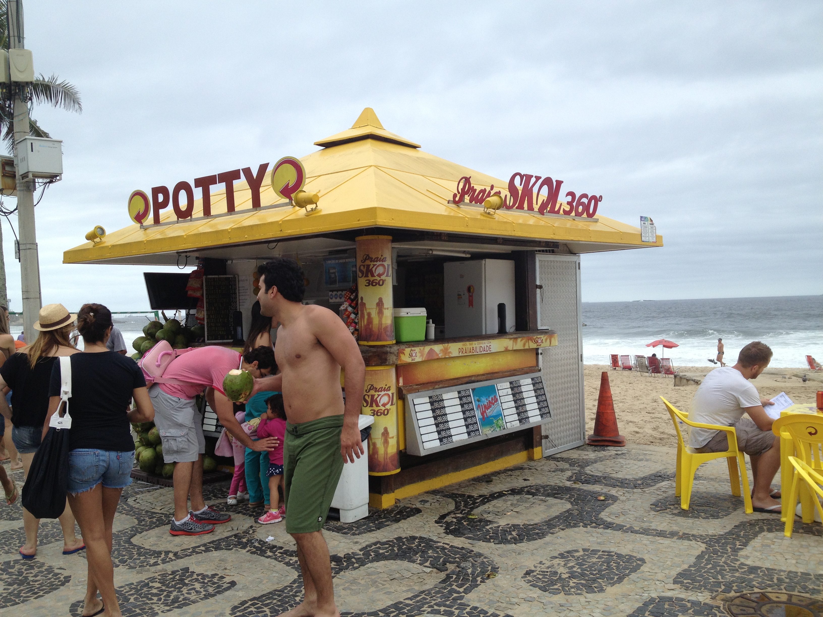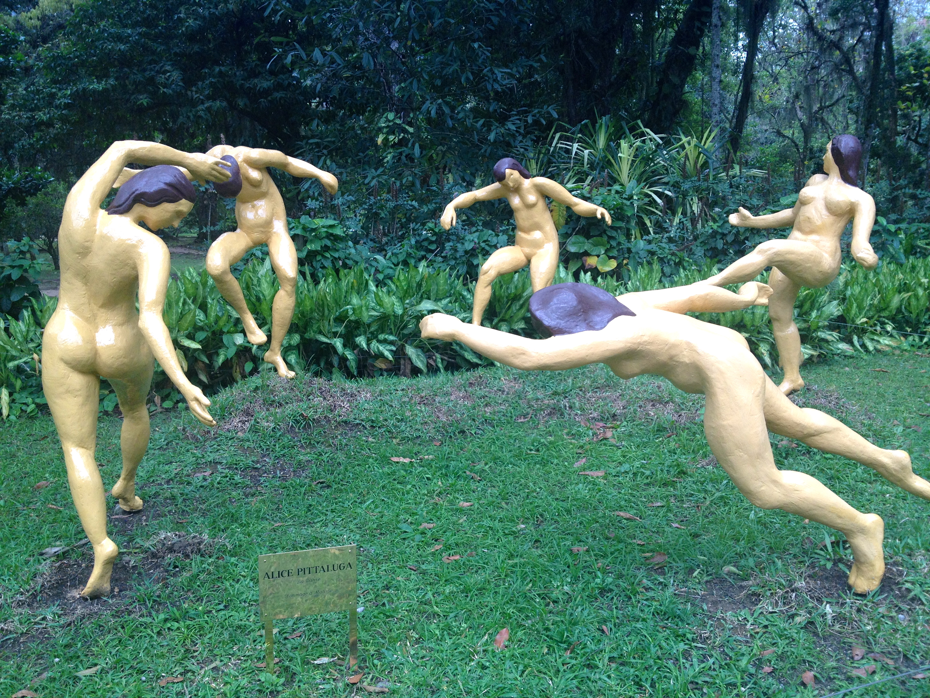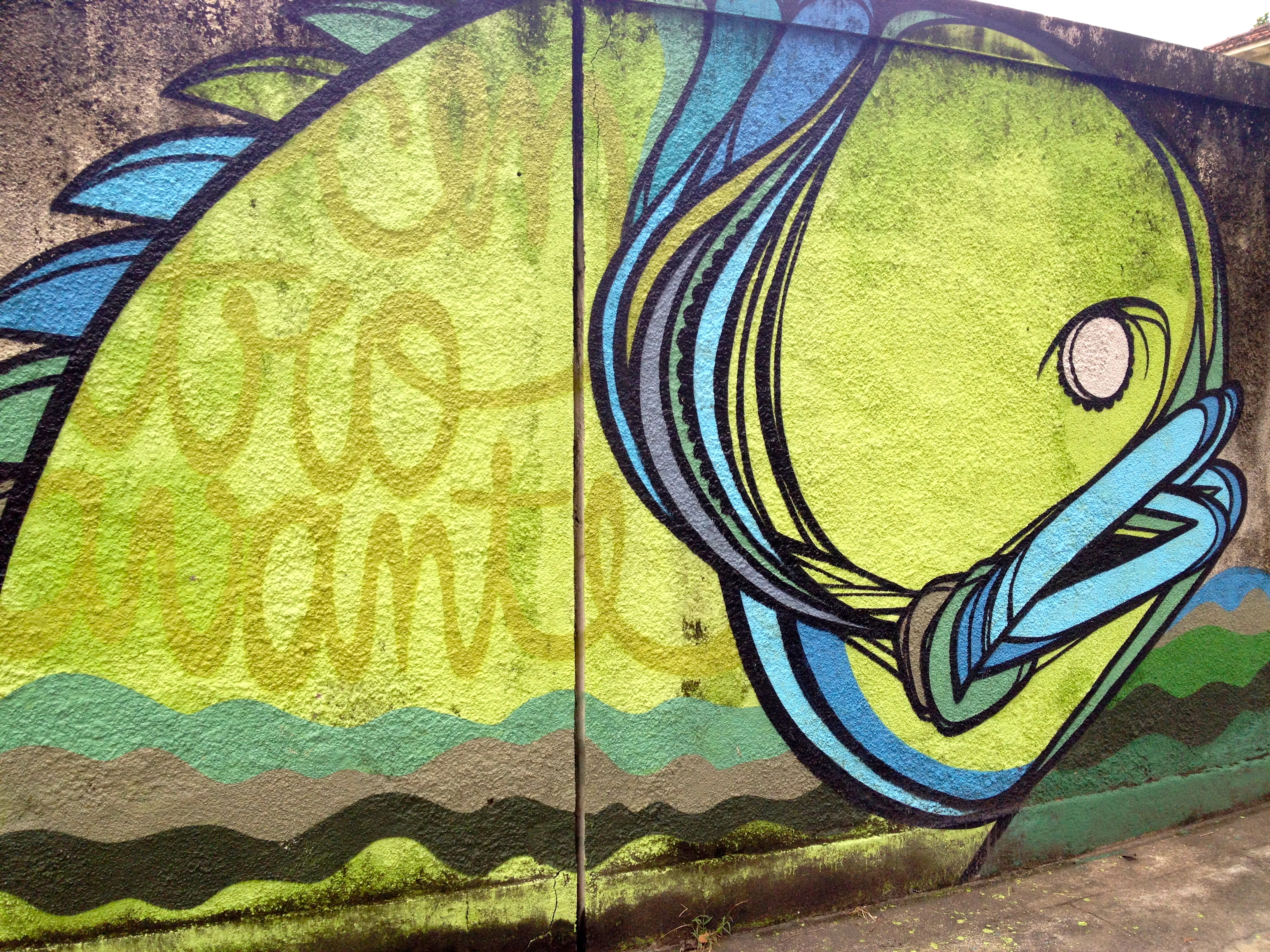 But secretly I was glad. Rather than spending a lot of money to sit on a tour bus for five hours (after an 11-hour flight), I much prefer to experience the city in the ordinary ways that natives do: going for a walk, shopping at the supermarket, sitting in a café writing in my journal. So that’s how I spent my day. I Googled “What to do on a rainy day in Rio” and found the perfect write-up from a blogger who calls himself Gringo Rio, among whose several suggestions was a visit to the botanical gardens, rain or shine. It was a leisurely 45-minute walk there through Ipanema and Leblon (chic adjoining neighborhoods) and along Lagoa Rodrigo de Freitas, the large lake in the middle of Rio. Of course, when I got there, I realized that I don’t give a hoot about gardens. I know nothing about plants and trees. I had more fun taking pictures of public art (aka graffiti) on my walk and sitting in the café at the Jardim Botanico chatting with two strangers — a chatty Dane and a quieter Belgian — who met at the airport and seem to be having a travel fling.
