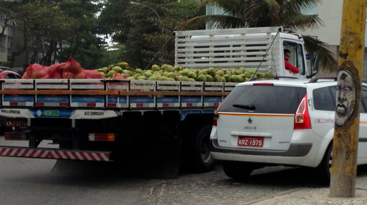 Every snack bar on the beach sells (for R$4) coconuts you sip with a straw. I idly wondered where all these coconuts come from, and then I saw this supply truck that circulates up and down Rio do Sul restocking all day long.