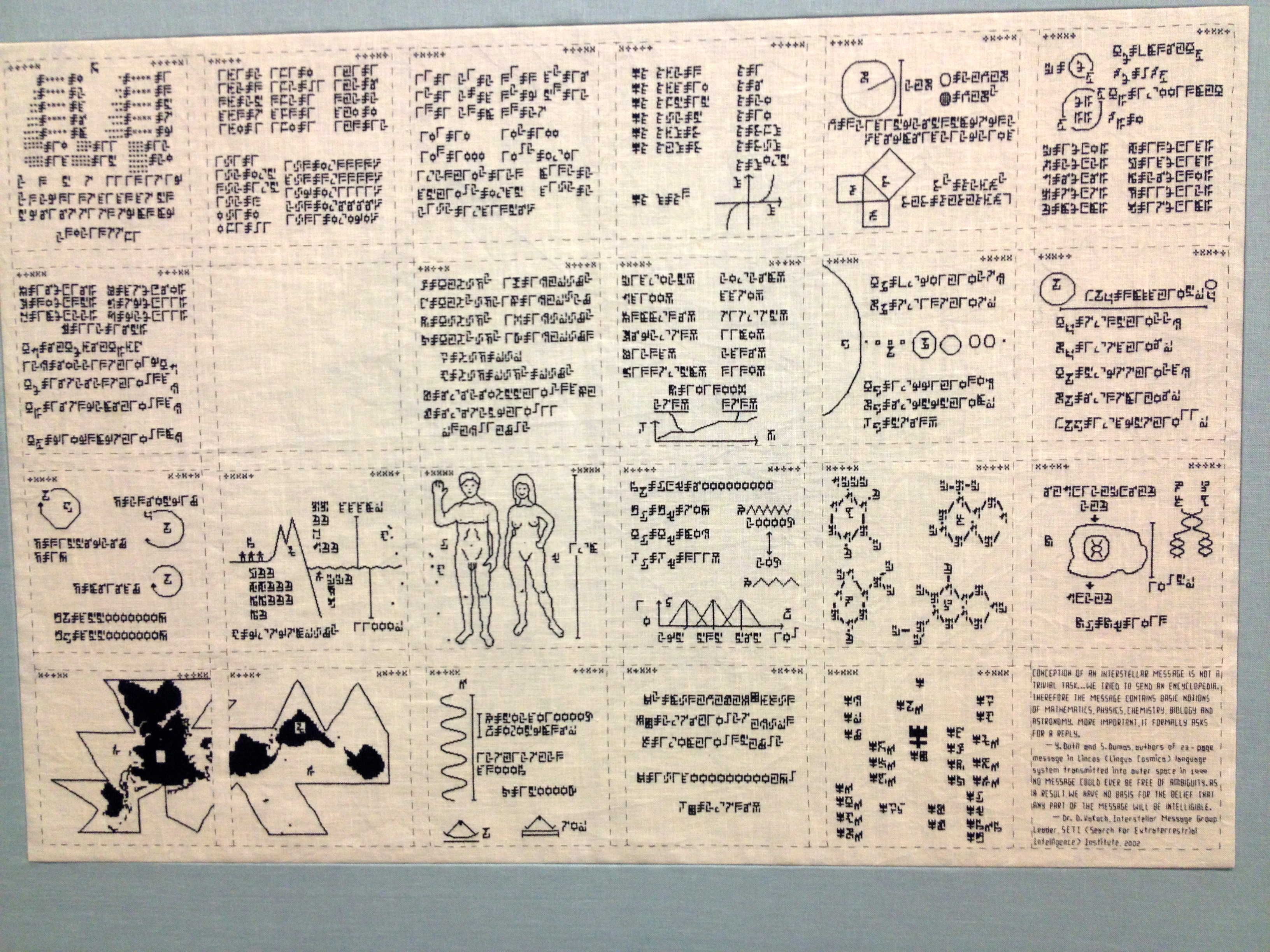 Among the handful of American artists was Elaine Reichek, some of whose embroidered works I’d seen before at the Whitney Biennial