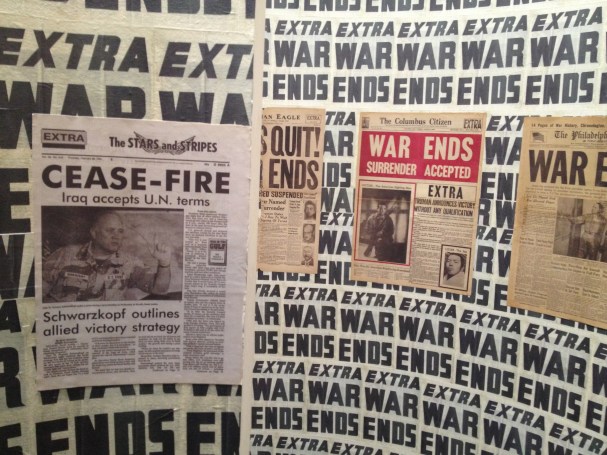 Venezuelan artist Eduardo Gil was a revelation to me — this spiral installation featured a series of newspaper front pages from the last century and a half that add up to “A Brief History of the End of War”