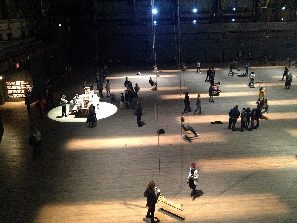 Twenty minutes before the show ends every day, a soprano comes out onto a balcony over the entrance and sings a song composed for the occasion by David Lang. Beautiful show! More fun that “Discovering Columbus” and right up there with the best audience-participation installations in MOMA’s atrium.