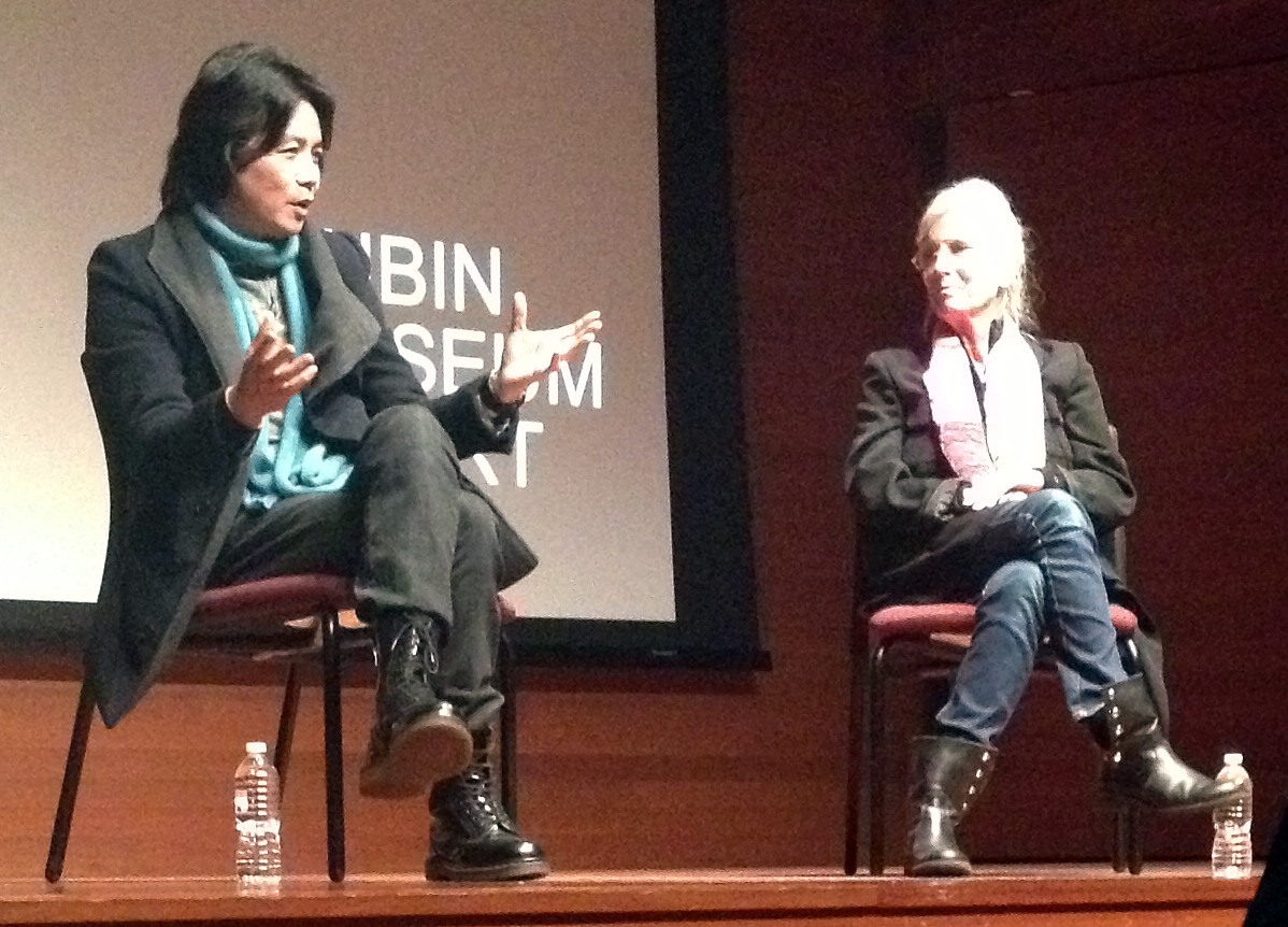 Film: The Rubin Museum presented a special screening of Sherwood Hu’s film adaptation of Hamlet, Prince of the Himalayas. I took a special interest because the Rubin’s whip-smart curator Tim McHenry booked the Wooster Group’s Elizabeth LeCompte to have a conversation with the director after the screening. I had the thrill of sitting between Hu and LeCompte (below), who was there with her own Hamlet, Scott Shepherd. The movie was fantastic, provocative and revelatory – Hu drew out interpretations of the story no one else ever has. Most notably: the reason Gertrude married Claudius so quickly after her husband’s death is that they’d been lovers before Gertrude’s marriage, and Claudius killed him because he was abusive to Gertrude. And Ophelia dies in the river (here a lake) giving birth to Hamlet’s son, who turns out to the title character. Set in ancient Tibet and shot on location mostly outdoors, the film is ravishingly beautiful and very well-performed. In the interview afterwards, though, the director came off badly. LeCompte kept asking him excellent questions, and he kept giving generic, bland blah-blah-blah answers; she was very persistent and kept asking him again, to no avail. And of course in her modest but unerring way, she noted that the child might have received a very different reception had it been a girl.