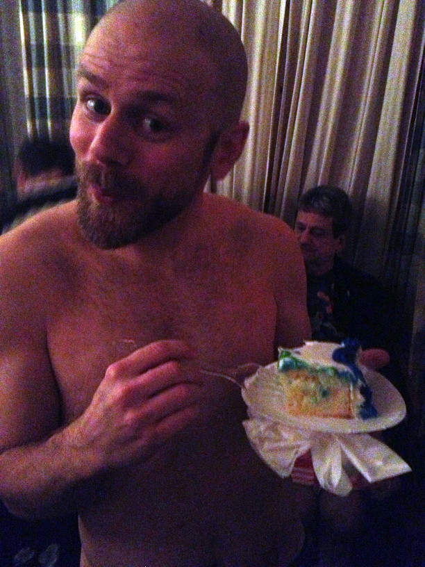 speaking of two lips, Croft nibbles the DJ’s birthday cake at Big Apple Ranch