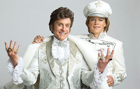 There’s been a long, headache-inducing debate about the question of straight male actors “playing gay”—whether it’ll ruin careers, whether audiences will find the actor hot, and on and on. It’s a nonsense issue that social progress has begun to render irrelevant, and Michael Douglas’s spectacular performance as Liberace demonstrates a rarely discussed benefit. Freed from his trademark macho sulk, Douglas gains all sorts of unexpected charisma—he’s genuinely funny and surprisingly sexy, even with his toupee off, looking like an unshelled tortoise. His eyes lit with amused intelligence, Douglas’s Liberace is your classic “bossy bottom,” a gleeful narcissist who treats his hangers-on as a mirror (sometimes literally: he pressures Scott [Thorson, his boyfriend] to get plastic surgery to look like a younger version of him). And yet the man’s a charmer. He’s playful, even when he’s selling the world a line. In bed, the two have loving, affectionate exchanges, candid about their histories. Liberace jokes with Scott about the rumors—ones he encourages, of course—that he’s engaged to the Olympic champion Sonja Henie. “As if I would marry an ice skater,” he scoffs. “Please. I mean, those thighs!”