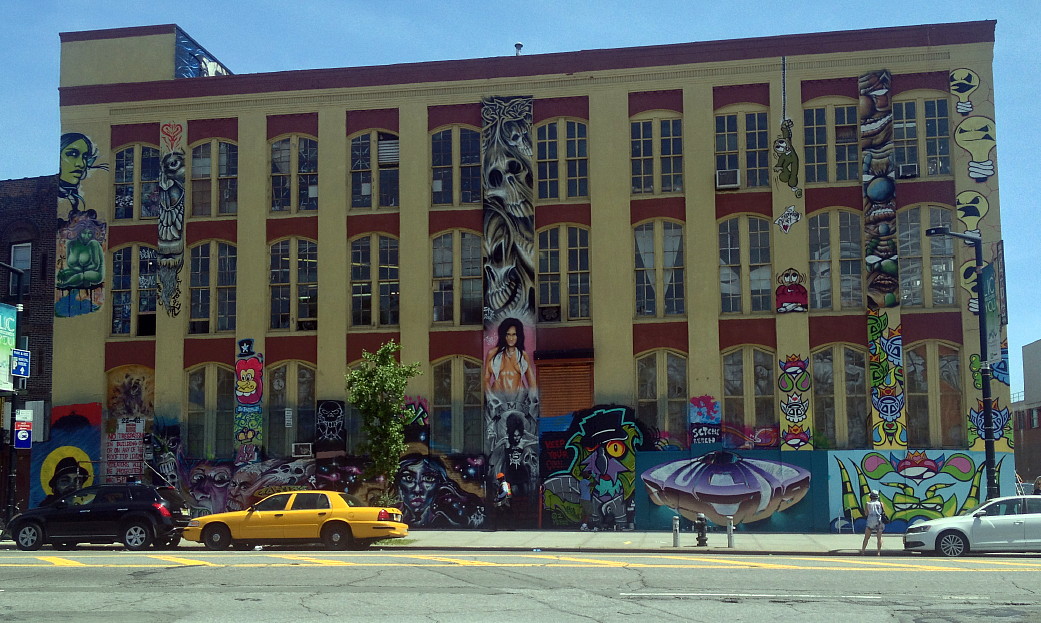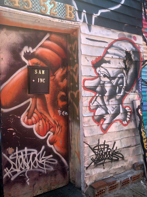 When I left PS 1, I noticed across the street a curiously graffiti-covered building that looked like something you’d stumble across in San Francisco’s Mission District: