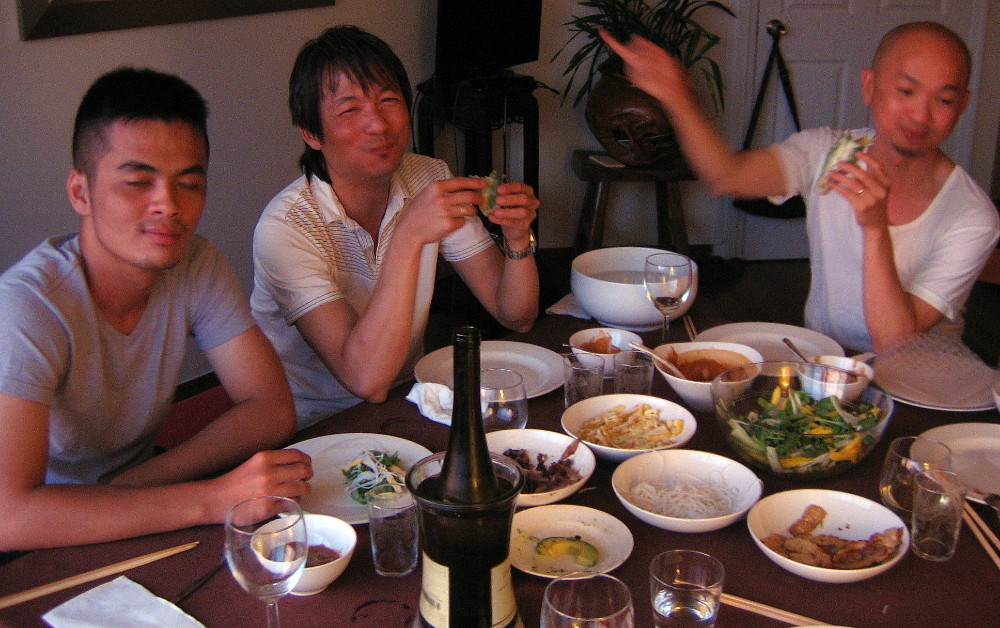 Home prepared a delicious meal of Vietnamese spring rolls and introduced us to their adopted son Duc (whose shining alert eyes were closed for this snapshot)