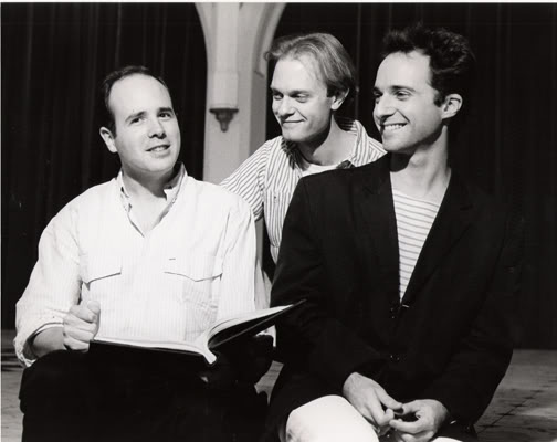 Rehearsal for the original production at the Public Theater: Edward Atienza as Jacob Blank, playwright Harry Kondoleon, director Mark-Linn Baker, and Reed Birney as Himmer