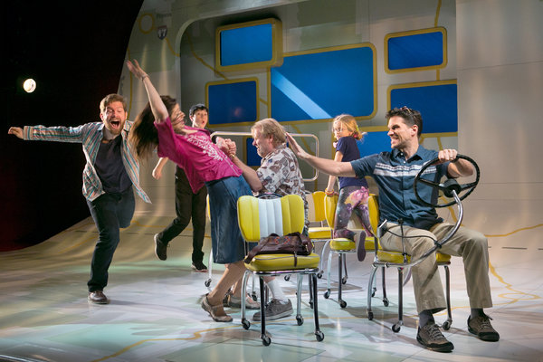 The musical is superbly, unpredictably cast – in the Steve Carell role, Rory O’Malley is an appealingly pudgy Jesse Tyler Ferguson type; I find Will Swenson charmless, which isn’t bad for the self-absorbed dad; I’ve always been a big fan of David Rasche, who couldn’t be more unlike the movie’s Alan Arkin; and all the nasty little girls are great, including Hannah Nordberg’s Olive. The wittiest thing about the show is Beowulf Boritt’s set, which snakes up from the floor onto the ceiling.