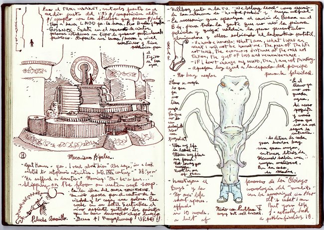 In an email interview, del Toro said that he started keeping notebooks in his 20s, and that sharing them with readers is an extension of his commentaries on DVDs. “I wanted to open my process a little bit more,” he said. “Dick Smith, Ray Harryhausen, Hitchcock, many of my idols had an open process and inspired me.” He hopes aspiring filmmakers will learn to “embrace your passions wholeheartedly, obsessively, and enshrine images, collect them and study them as a code.”
