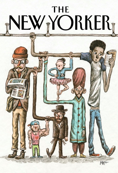 Some highlights in addition to Liniers’ delightful cover, titled “Straphangers”):