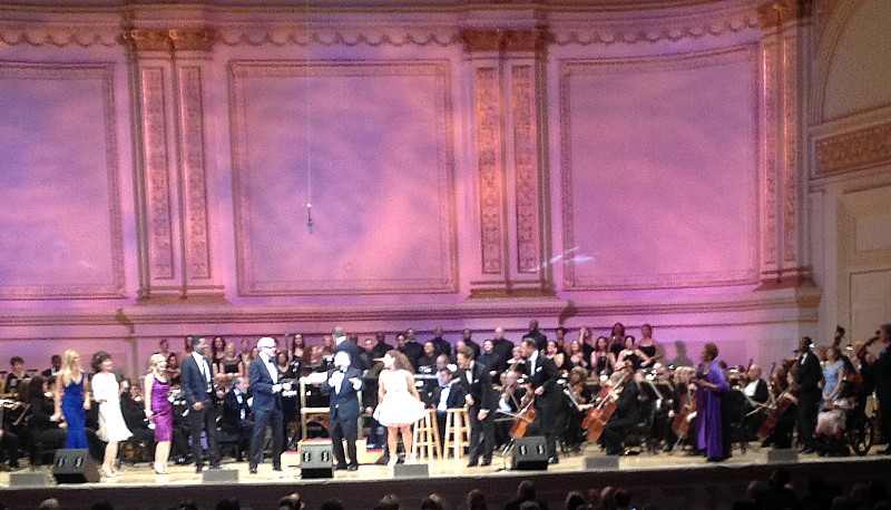 The New York Pops celebrated its 31st birthday gala by honoring Marc Shaiman and Scott Wittman for their three decades of writing music and lyrics for Broadway, Off-Broadway, Off-Off-Broadway, the West End, movies, and TV. I snared a last-minute ticket and vicariously kvelled for Shaiman and Wittman, whose work I’ve watched and enjoyed from the beginning. It’s one thing to have your music recorded in the studio for a soundtrack album or original cast recording. It’s very cool to hear it coming out of a Broadway orchestra pit. But to get to witness a whole evening (well, 90 minutes) of a full orchestra playing your stuff at Carnegie Hall? Golden.