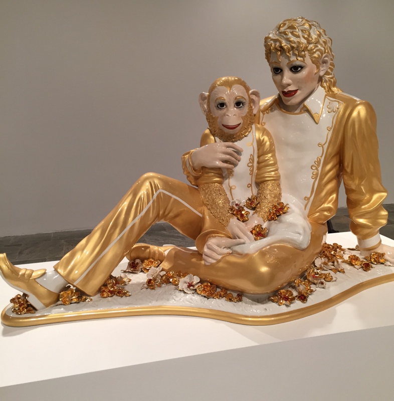 But a lot of Koons’ work trafficks openly and unapologetically in banality as commentary on contemporary American consumer culture, like this porcelain sculpture of Michael Jackson and his pet chimpanzee, Bubbles (one of Koons’ most famous images):