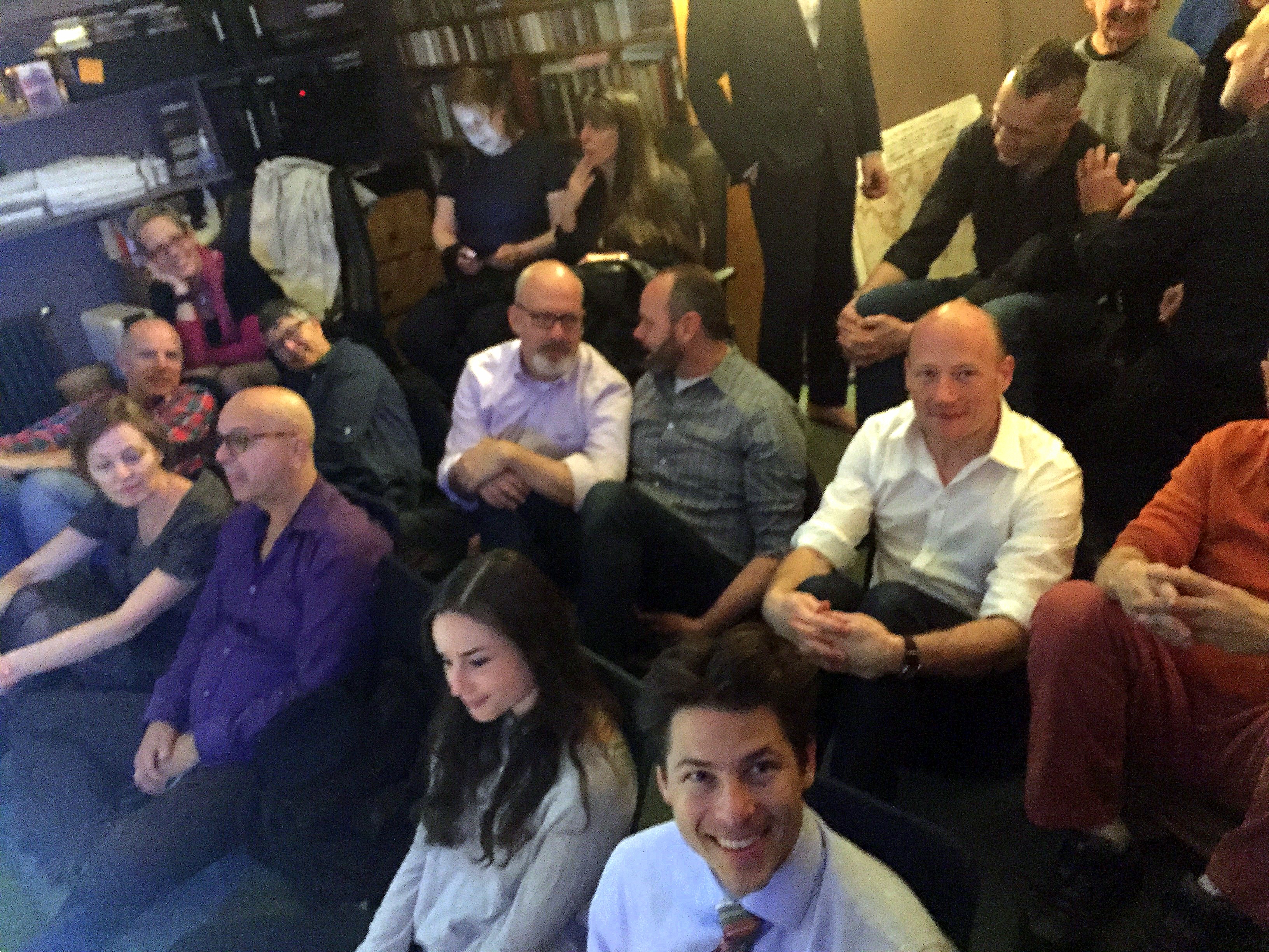 I’ve gone to see many Foundry Theatre productions over the years — great shows from David Hancock’s Deviant Craft to David Greenspan’s The Myopia, from Rinde Eckert’s And God Created Great Whales to Claudia Rankine’s The Provenance of Beauty, season-long colloquia on topics like money, values, and hope — but the other night the Foundry Theatre came to me. The current production, Gideon Irving’s solo Living Here, happens in a different New York City apartment every night, and the performance I volunteered to host in my living room took place last Thursday.