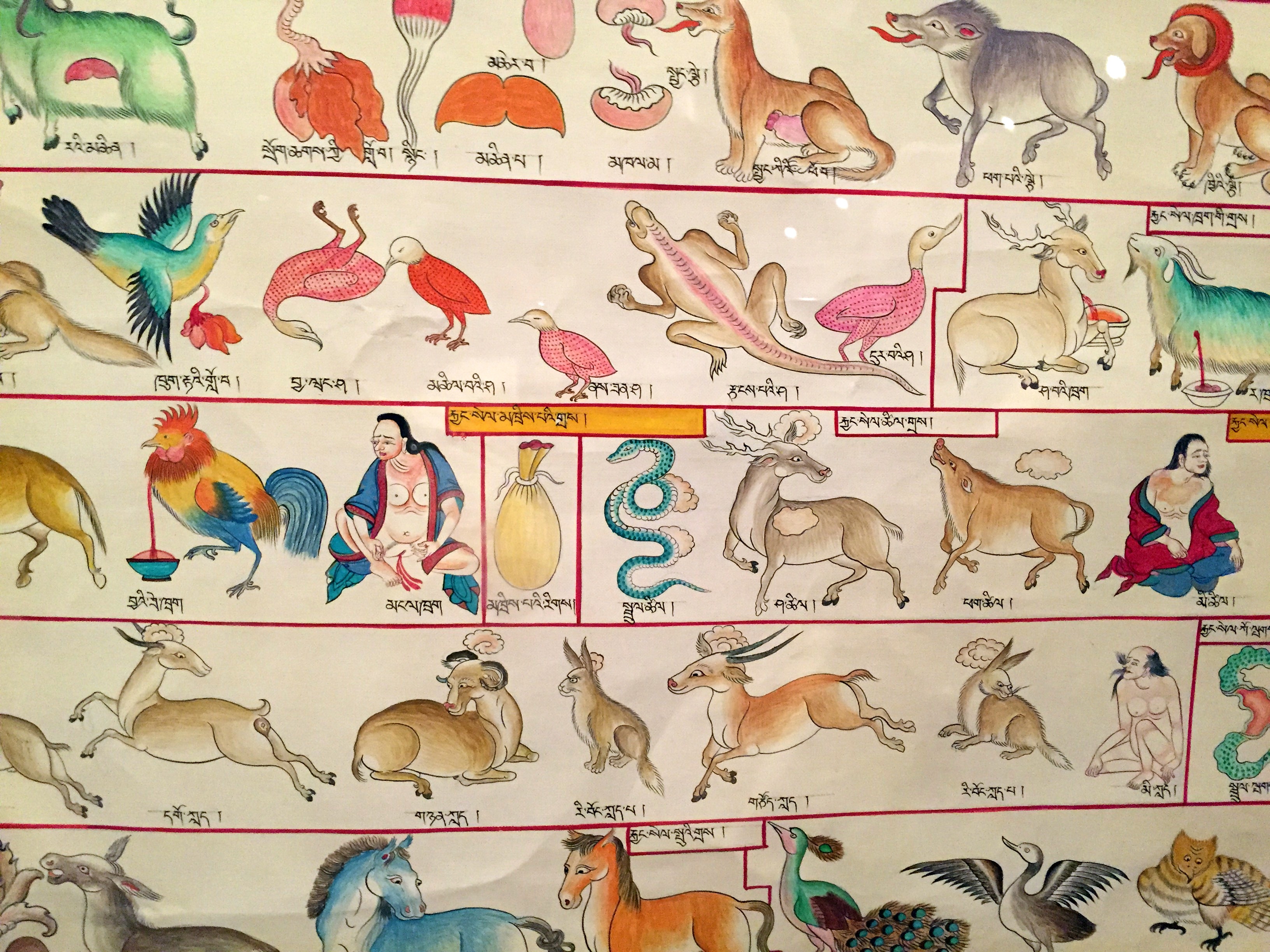 Last Friday Andy and I went to the Rubin Museum of Art for the screening in their Cabaret Cinema series of Jim Henson’s 1986 film Labyrinth, starring David Bowie, a very young Jennifer Connelly, and a million puppets. While milling around with the Friday night K-2 Lounge cocktail crowd and waiting for the movie theater door to open, we took the time to check out the exhibition downstairs of tangkas (Tibetan paintings) related to medical treatment. They’re very beautiful, intricately drawn and inscribed, and frank enough in their depiction of bodily functions to conjure comic books inspired by Hieronymous Bosch.