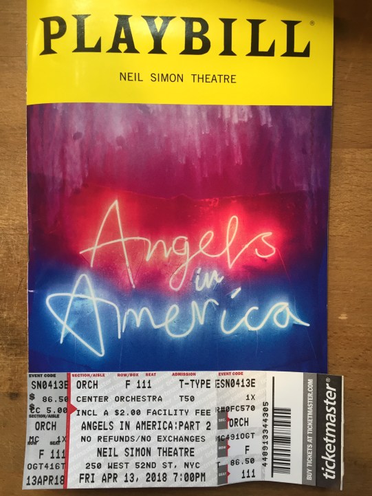 The following year I traveled to Los Angeles to see the official “world premiere” at the Mark Taper Forum, directed by Oskar Eustis and Tony Taccone, who had commissioned the play for Eureka. And in 1993 I saw the original Broadway production, staged by George C. Wolfe, and wrote a cover story for the Voice that centered on a long, fascinating interview with Kushner. When Mike Nichols’ made-for-TV movie came out in 2003, I watched it three times. And I saw and reviewed Michael Greif’s Off-Broadway revival of the play at Signature Theater in 2010. I was out of town when Ivo van Hove’s stripped-down production played the BAM Next Wave Festival in 2014 so I wasn’t even tempted to go. By the time Marianne Elliott’s production for the National Theater in London became a big hit and transferred to Broadway, I kinda felt like I’d had my fill of Angels in America and would be content to skip it, relishing my memories of past productions. But the reviews and word-of-mouth were so stellar that curiosity got the best of me, and I decided to buy a ticket at the last minute to see Part 2, Perestroika, because it’s been dramatically different in each previous production and I was curious to see what Elliott — who staged the thrilling Broadway production of The Curious Incident of the Dog in the Night-Time — has done with it.