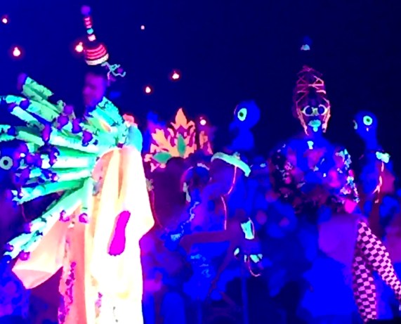 A conceptual show this long is bound to be padded and stretched thin in spots, and it was. There was the hour of drinking songs. There was the hour the audience spent blindfolded doing sensory perception exercises that required intimate interaction with your neighbors. Apples, beer, and ping pong balls were freely distributed. Large swaths of the show involved audience members dragged onstage to perform crucial tasks. Most of it was fun and engaging, but the real highlight of the first 12 hours came around the 9th hour when Taylor Mac rescued Gilbert and Sullivan from cultural appropriation jail by performing The Mikado on Mars, through vocoders, mostly to a reggae beat, with the crucial role of Yum-Yum played by a game young guy from the audience following instructions through a headset. It was one of the craziest and most fun things I’ve seen in the theater in years.