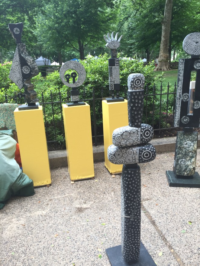 We met Jimmy’s adorable ancient kitty Scarlett, and after brunch walked through the sidewalk art fair in Rittenhouse Square. I admired some stone sculptures by Paul E. Braun.