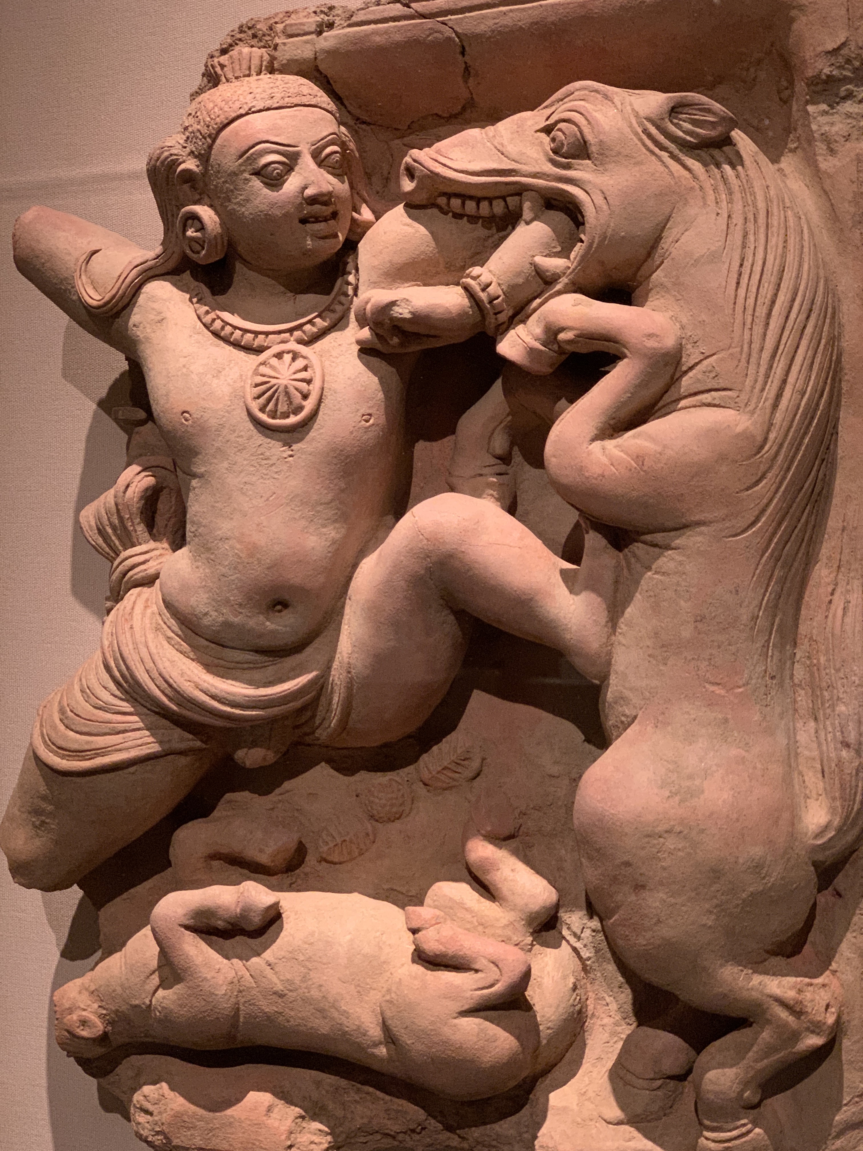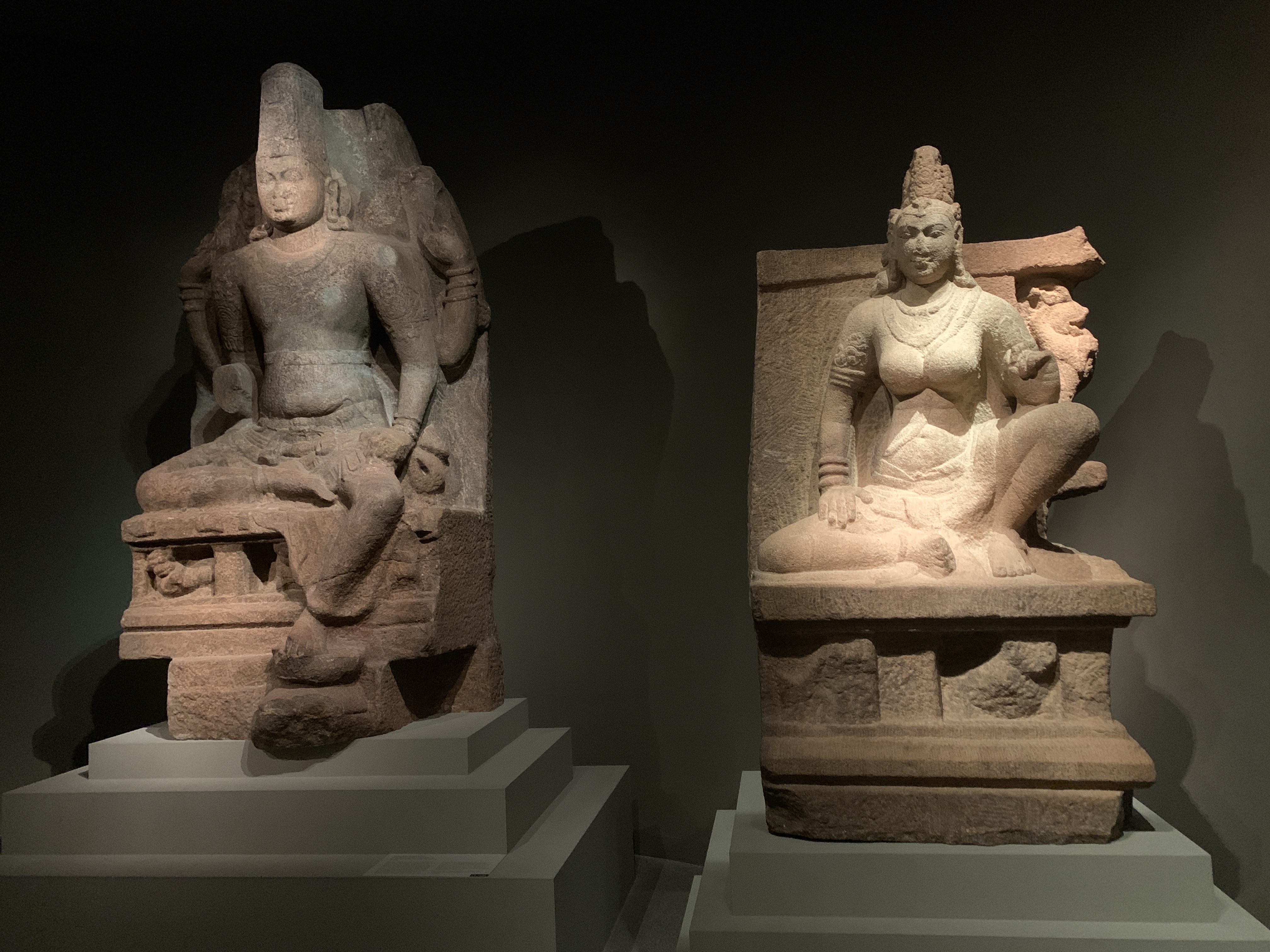 European paintings. Gold figures pointing. Japanese sculpture. Islamic calligraphy.