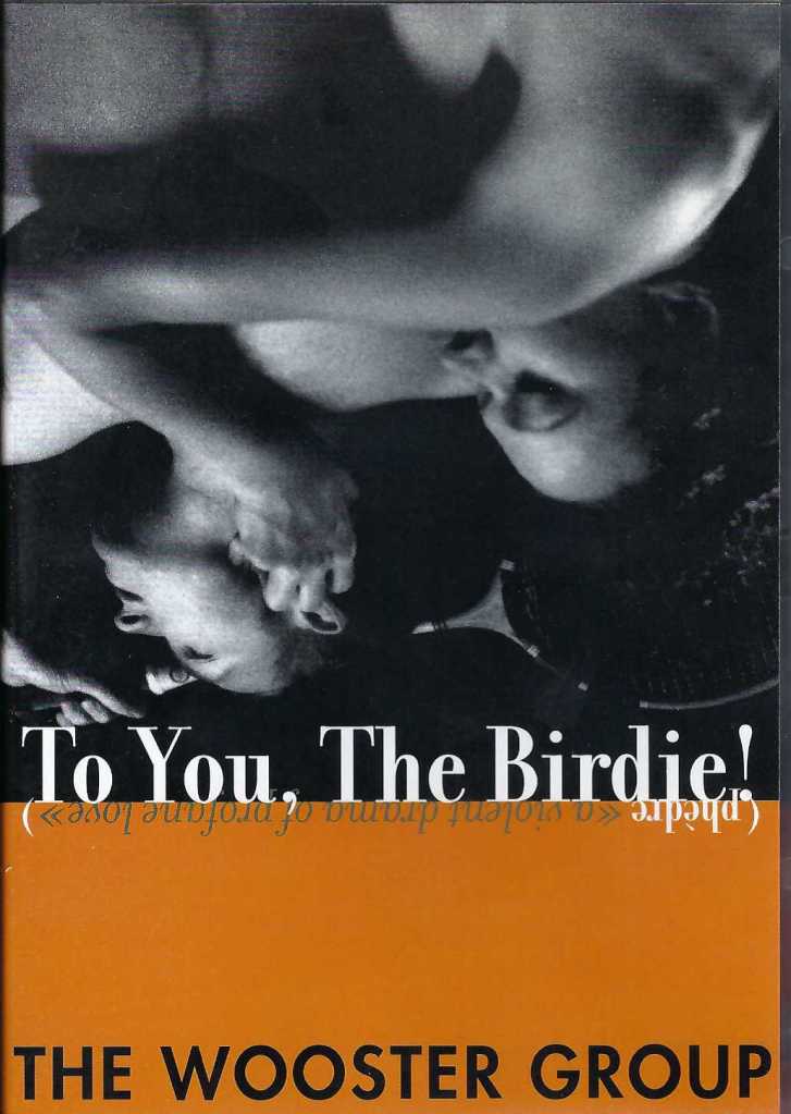 I’ve owned the DVD of the Wooster Group’s To You, the Birdie! since they first made it available in 2011, but I never watched it until last night. Andy had never seen the show but had heard me talk about it numerous times, so we watched the whole thing. The single camera video couldn’t possibly convey the vibrancy and presence of the live show, so it was somewhat disappointing to me. I was more excited by the documentary clips that came as a DVD extra. But I was astonished at how much of the story and the play came through for Andy, much more detail than I’ve ever comprehended. We talked about how the first time you see a Wooster Group production you’re watching for narrative, for storyline, and that is often extremely frustrating because LeCompte (I’m going to call her Liz) could care less about that. When you see the show again, you relax your story-seeking mind and let the multisensory experience wash over you, letting your eyes wander all over the stage, where there is always something going on, sometimes comprehensible, sometimes cryptic. Impossible to see it all.