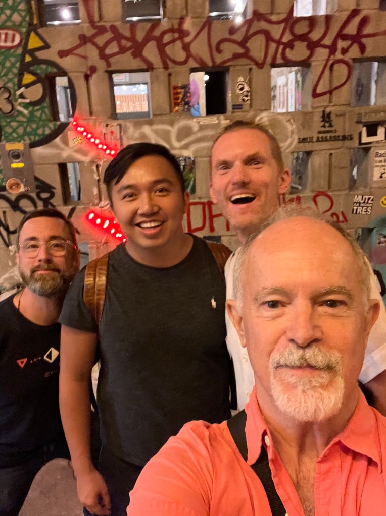 For their last number, they both jumped off the stage and cut a Soul Train swatch through the audience, communing and boogeying down with the ecstatic crowd. (Their next gig is at a festival in Bentonville, Arkansas!) Our posse of Body Electricians met beforehand for a drink and a bite at Loreley Beer Garden, and we took a stroll down Freeman Alley checking out the ever-changing artwork.