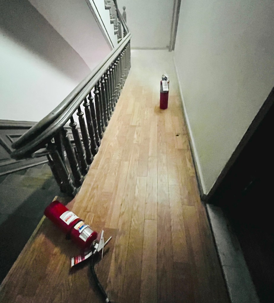 A weird thing happened just as we were turning in for the night. A couple of drunken guys got into an altercation on the street in front of my building, and the one getting beat up pressed all the buzzers until someone buzzed them in, at which point they proceeded to tromp up and down the stairs yelling and fighting. “Ehh, macho straight guys, let them settle it amongst themselves,” I thought. But then I heard a woman scream, so I called 911. The scuffling and yelling went on, someone spat on someone, which escalated the fighting. Eventually the friends of the fighters dragged them away. Shortly thereafter four wet-behind-the-ears NYPD officers showed up, looking scared and clueless. The fighters had apparently grabbed two fire extinguishers and sprayed each other with them, so a cloud hung over the hallway. Saturday night in the big city.