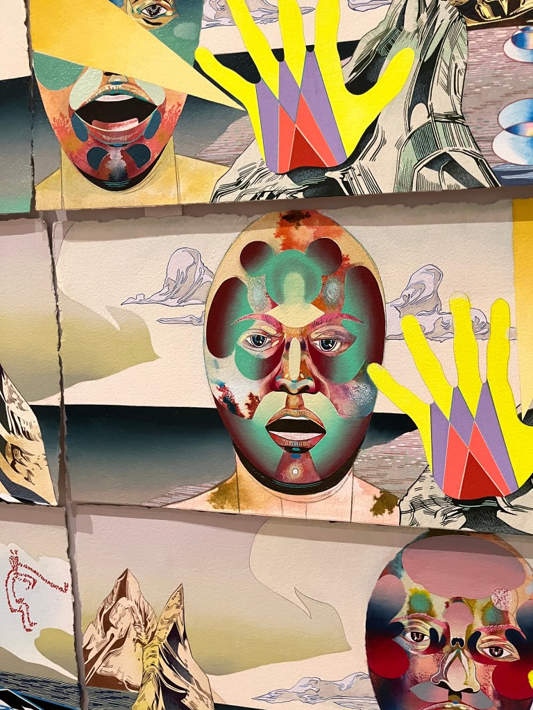 I felt indifferent to most of Taylor’s unbeautiful paintings, though I thought his room of portraits of artists was witty (Tyler the Creator on a suitcase, above; Deena Lawson “in the Lionel Hamptons,” below) and his installation dedicated to the uniforms of the Black Panthers arresting.