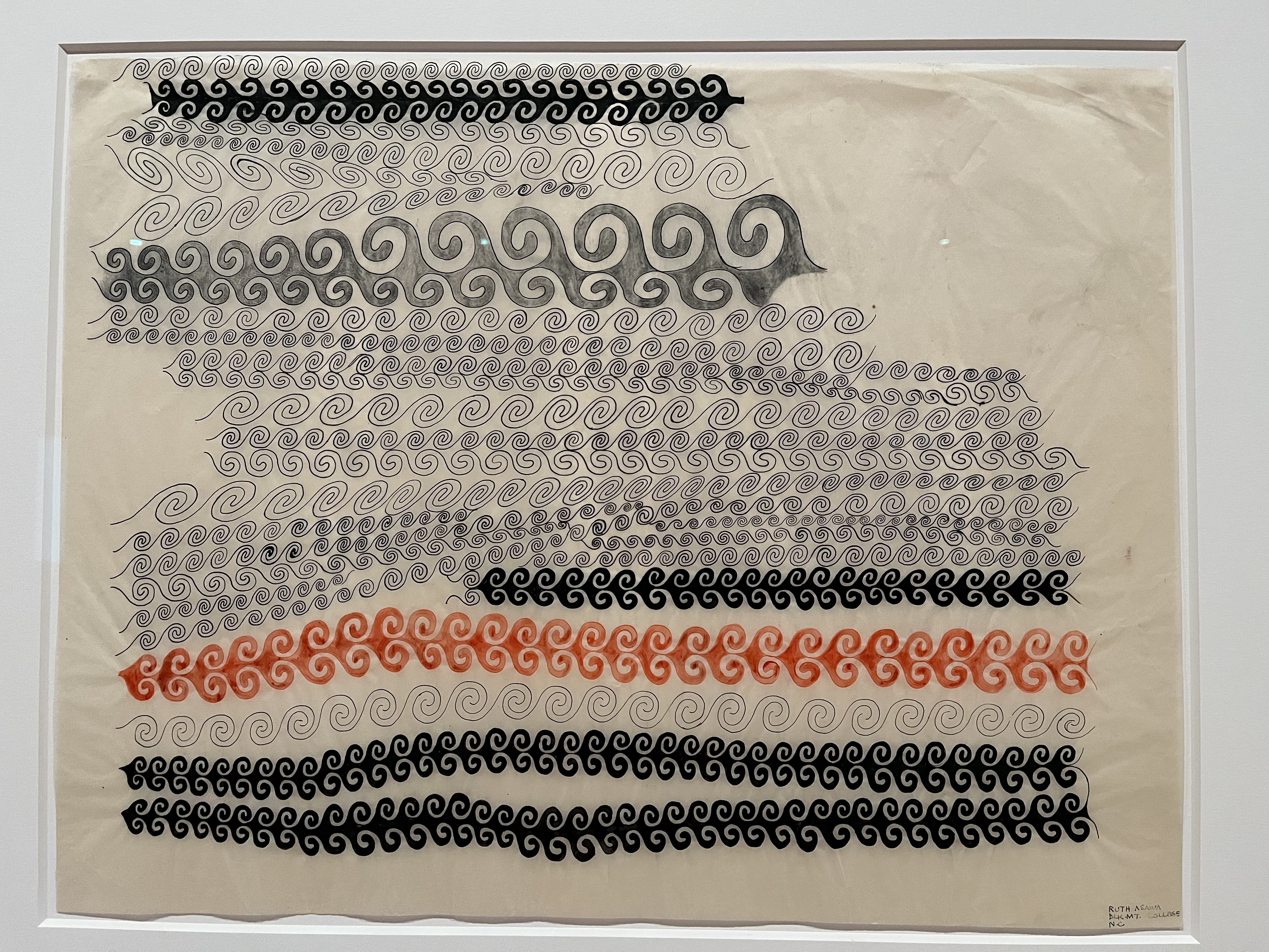 Our friend Sari and her adolescent son Sam met us afterwards for a stroll through the Whitney Museum, whose current offerings introduce museumgoers to Japanese-American artist Ruth Asawa (I first learned about her from the postage stamp in her honor; see “Untitled” above), African-American painter Henry Taylor, and in the project room Indigenous sculptor Natalie Ball. I never know what’s going to catch my eye at the Whitney.