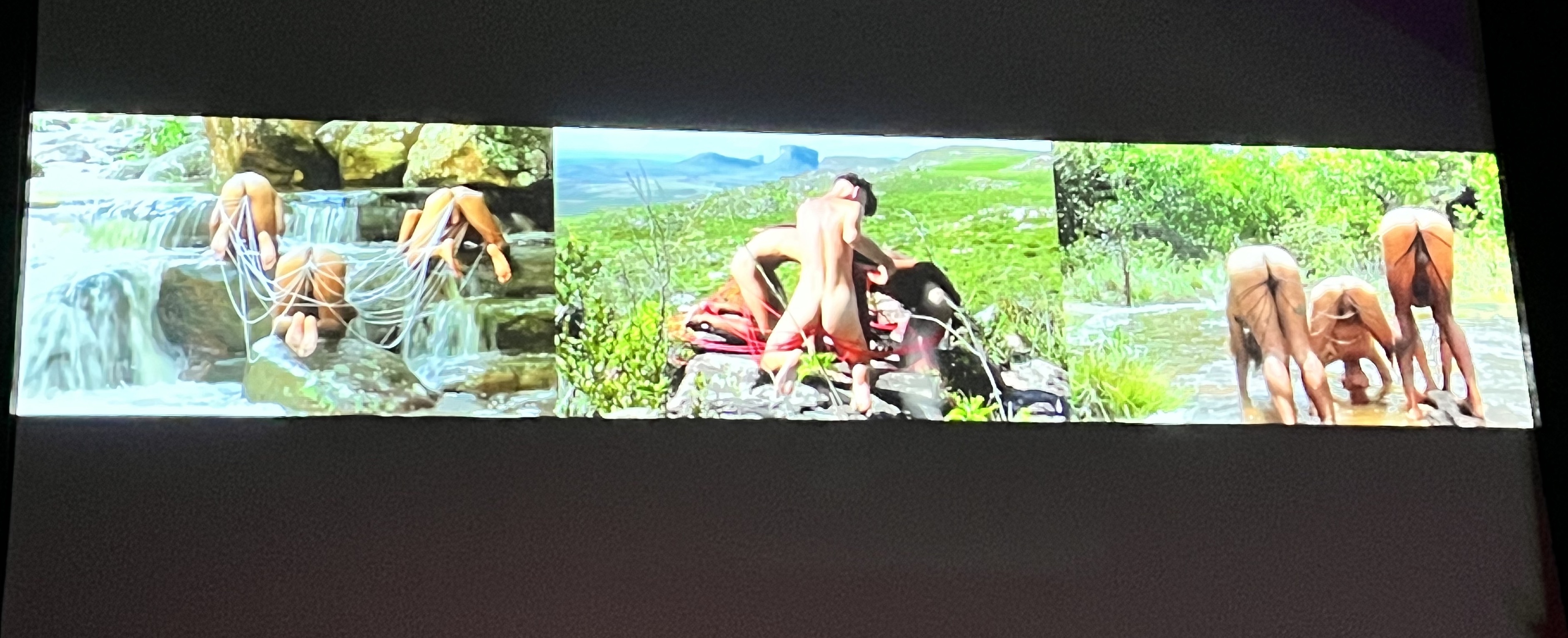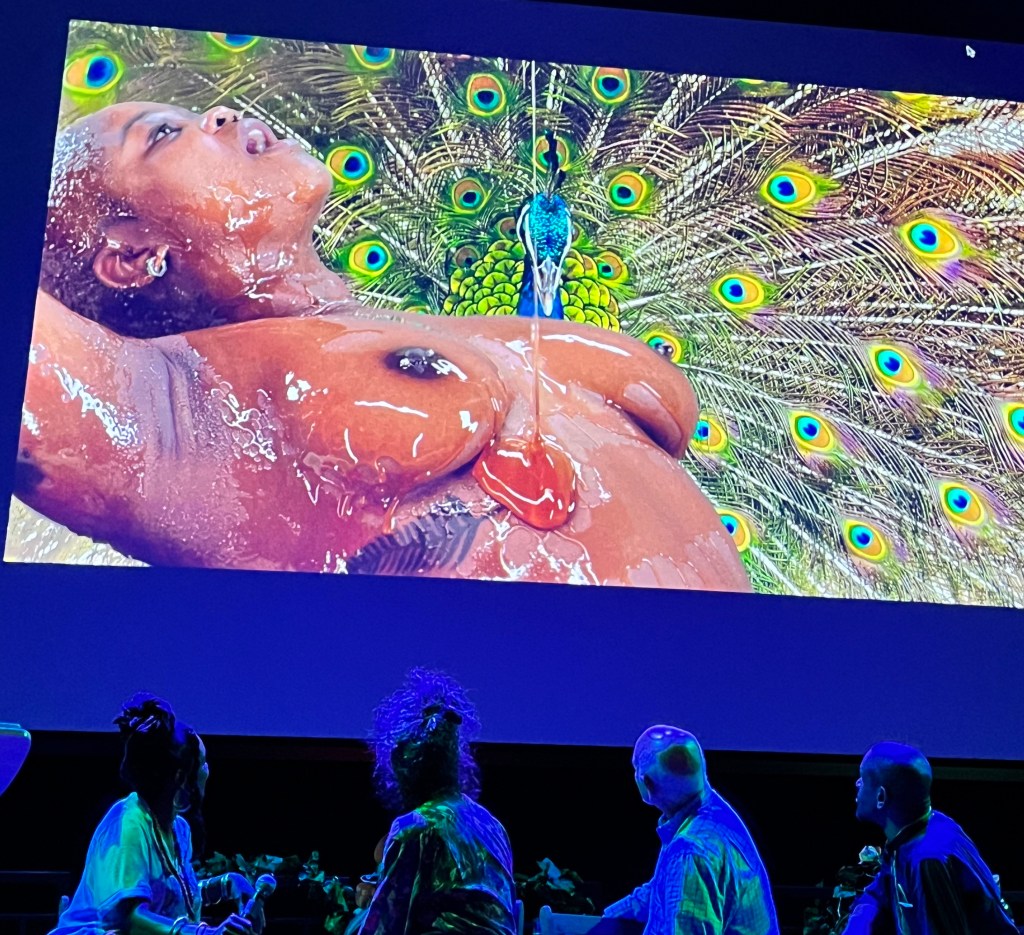 She also showed a clip from her film Oñí Ocan/The Heart of Sweetness, in which a succession of naked black bodies received a sensual libation of honey (she said they used 50 pounds of the stuff!).