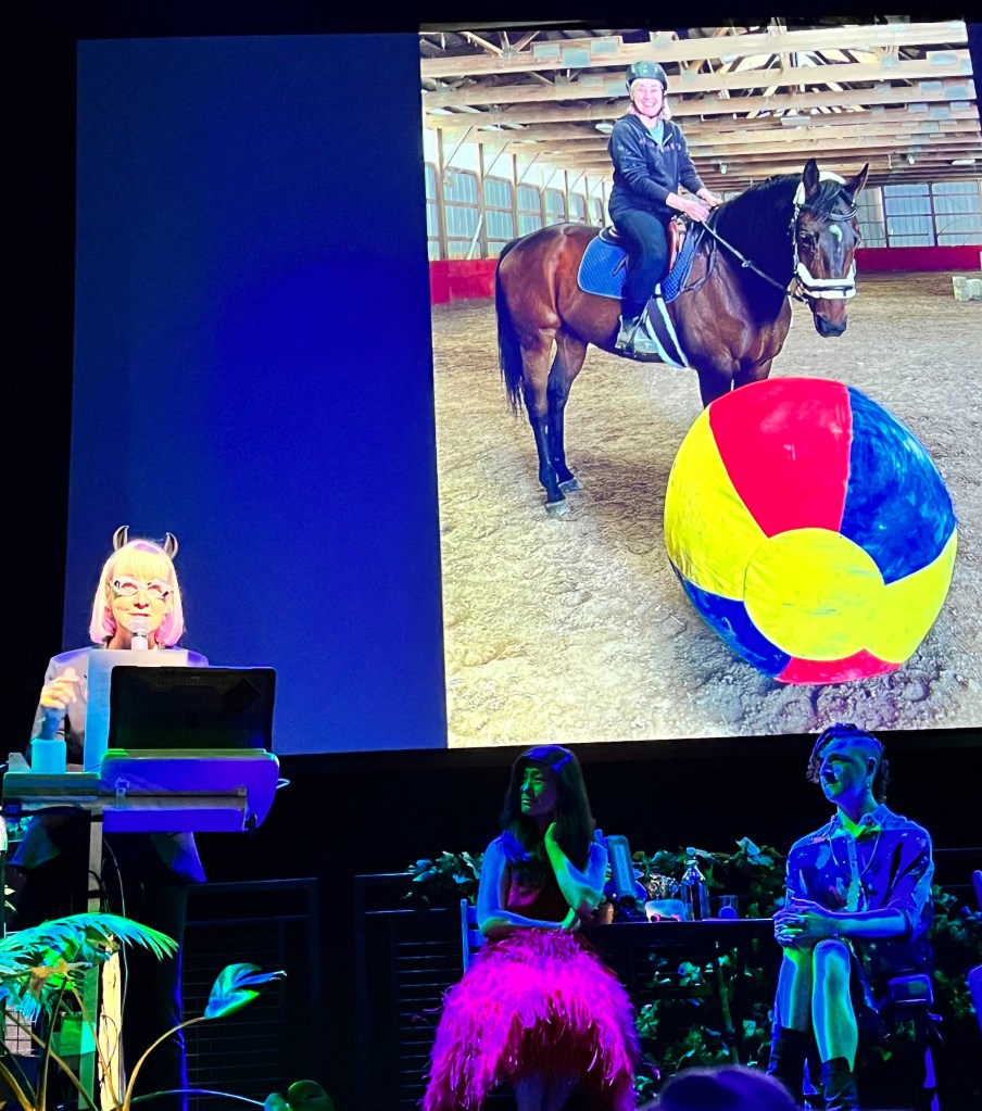 The meat of the program on Saturday were two panels. In the morning, “Strange Kin,” filmmaker Maria Yoon (The Korean Bride) showed excerpts from her new work about marrying the dead (Ghost Wedding). Queer astrologer Michael J. Morris connected the stars to the earth. Scholar Camila Marambio talked about her cancer treatment and generously noted how human researchers and patients have benefited from lab animals who have “a talent for cancer.” Urban Tantra founder Barbara Carrellas showed scenes from her practice of Equine Tantra.