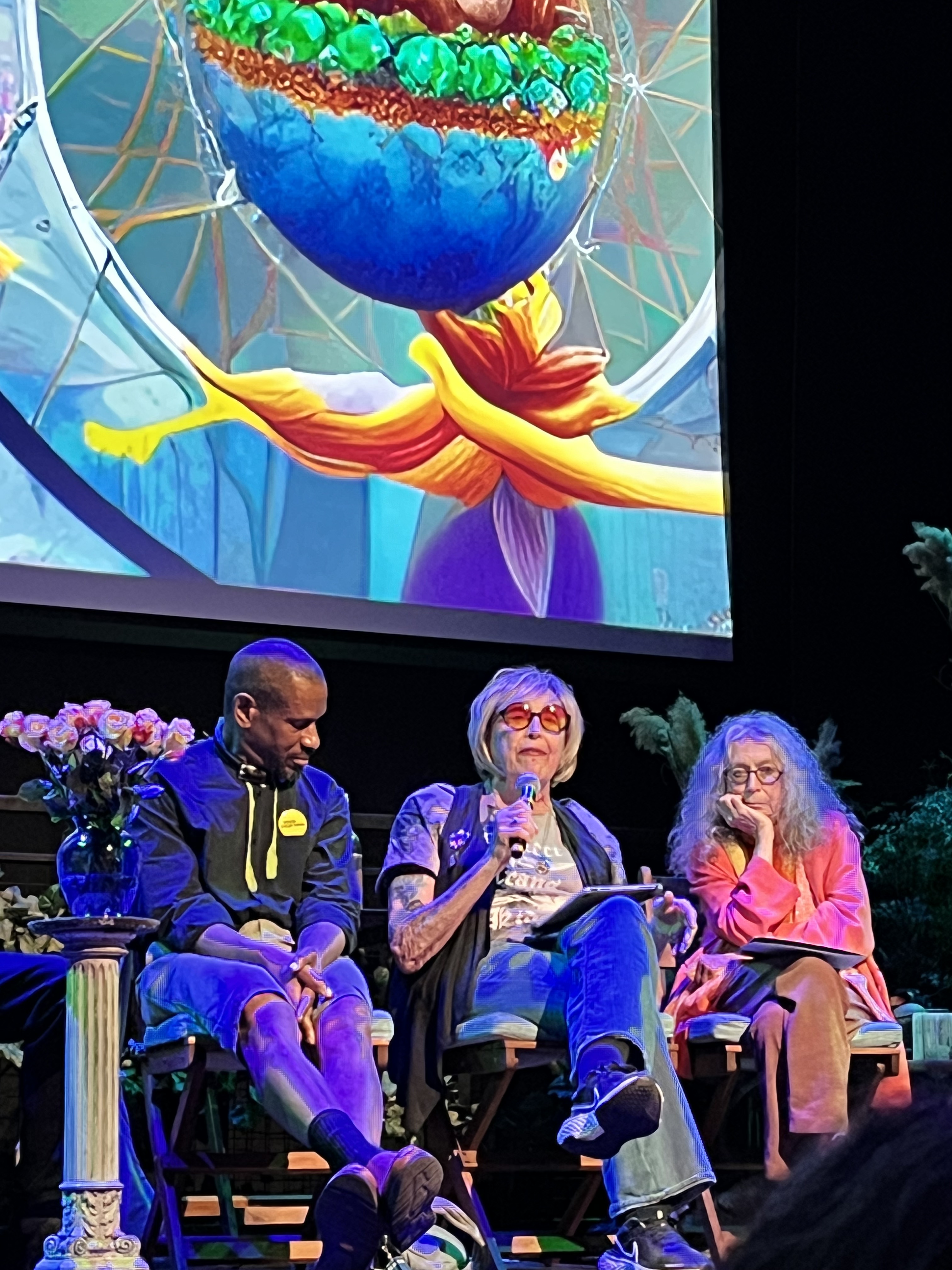 Trans pioneer Kate Bornstein gave an ecstatically received talk on “Exploring Gender in Four Dimensions.”