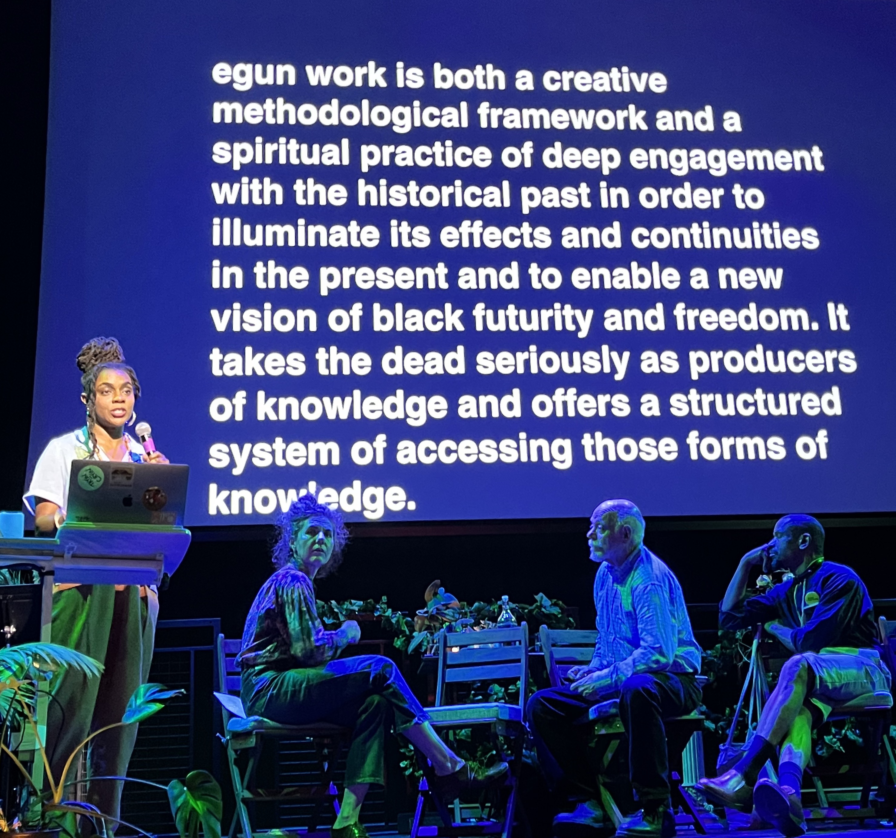 In the afternoon, “Elders & Ancestors,” charismatic Courtney Desiree Morris demonstrated working with egun, which in Santeria is understood to mean the collective spirit of all the ancestors in a person’s lineage.