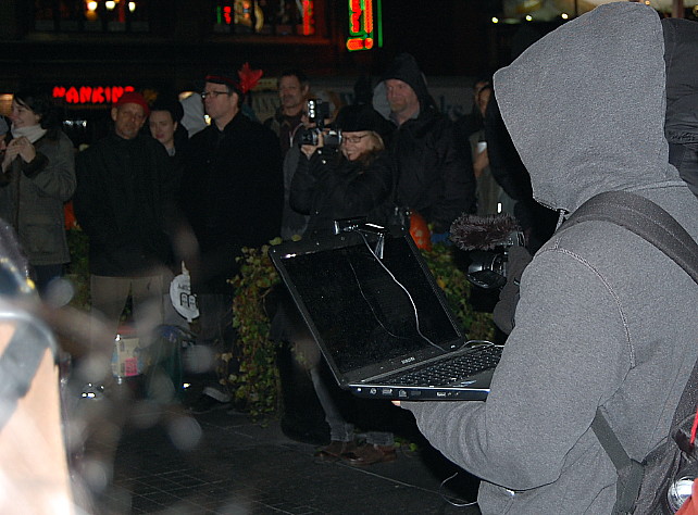 If you’ve ever tuned in to the OWS Livestream and wondered how it’s done, here’s how it works — this dude with his laptop and webcam strolling through the crowd.