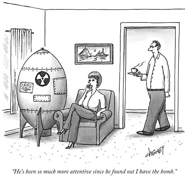 Another highlight is the latest of Paul Rudnick’s laugh-out-loud Shouts and Murmurs pieces, this one a take-off on recent books touting the superiority of French women in all things. “To maintain my figure, I eat only half portions of any food, always arranging it on my plate in the shape of a semicolon. For exercise, at least once a day I approach a total stranger and slap him. And late each afternoon I read a paragraph of any work of acclaimed American literary fiction, which makes me vomit.”