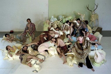 The Holy Body Tattoo is a Vancouver-based dance company that formed in 1993 and in 2006 morphed into a new entity called Animals of Distinction. In 2005, the company created monumental with choreography by company founders Dana Gingras and Noam Gagnon, poetic films by William Morrison, texts by Jenny Holzer, and recorded music by Montreal emo band Godspeed You! Black Emperor. Last year the bright idea emerged to revive the piece and tour it around to festivals with the band (who recently regrouped after being on hiatus for several years) playing live. I had no file on any of these artists except for Holzer, whose work with soulful/philosophical aphorisms I adore. When I arrived at the BAM Opera House, the ushers were handing out earplugs to nervous middle-aged patrons, which alerted me that it was going to be THAT kind of show, which usually thrills my rock-n-roll heart. The show was indeed a multimedia spectacle with separate movement, sound, and visual tracks intertwining in provocative and compelling ways.