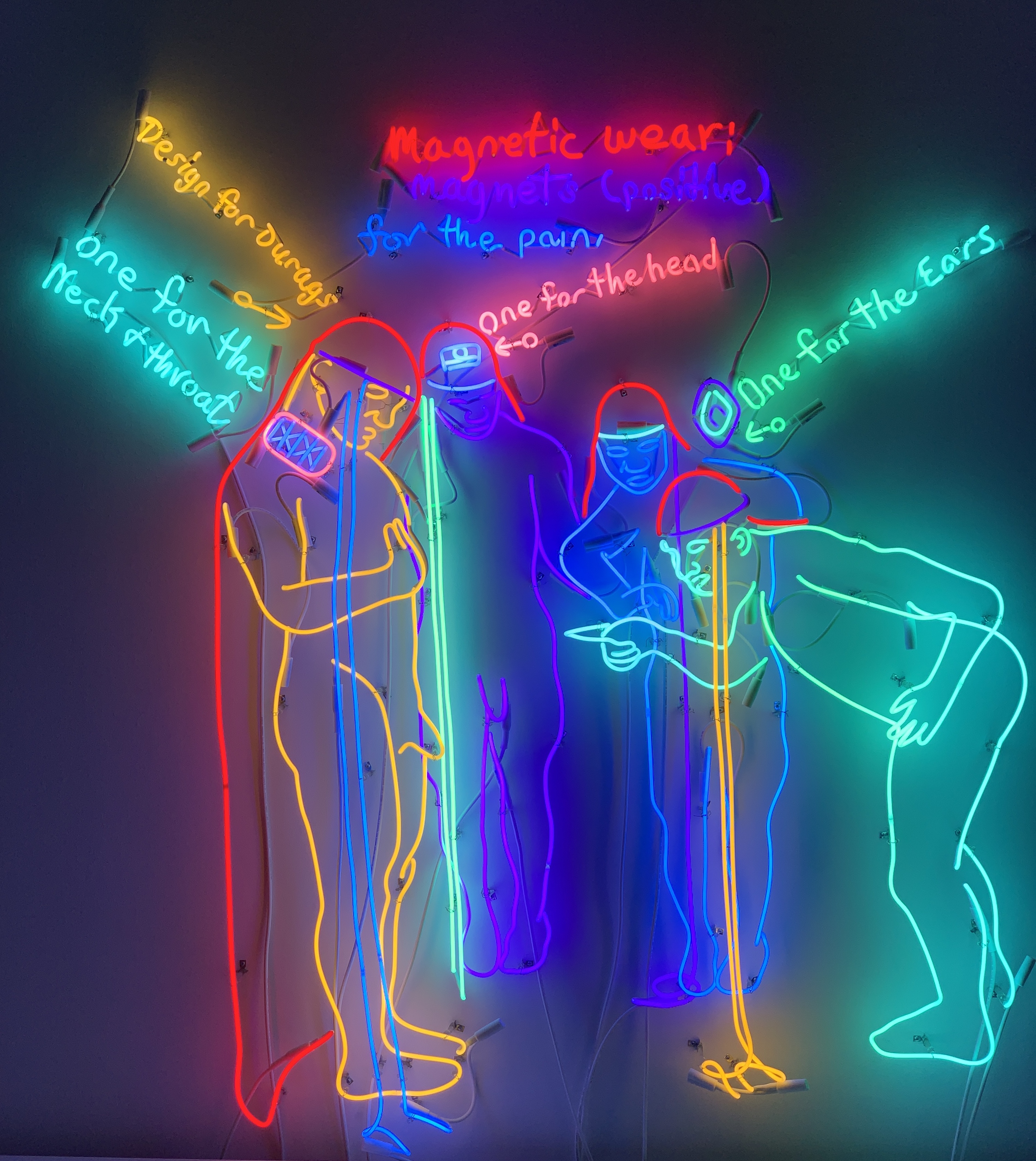 I felt indifferent to most of Taylor’s unbeautiful paintings, though I thought his room of portraits of artists was witty (Tyler the Creator on a suitcase, above; Deena Lawson “in the Lionel Hamptons,” below) and his installation dedicated to the uniforms of the Black Panthers arresting.