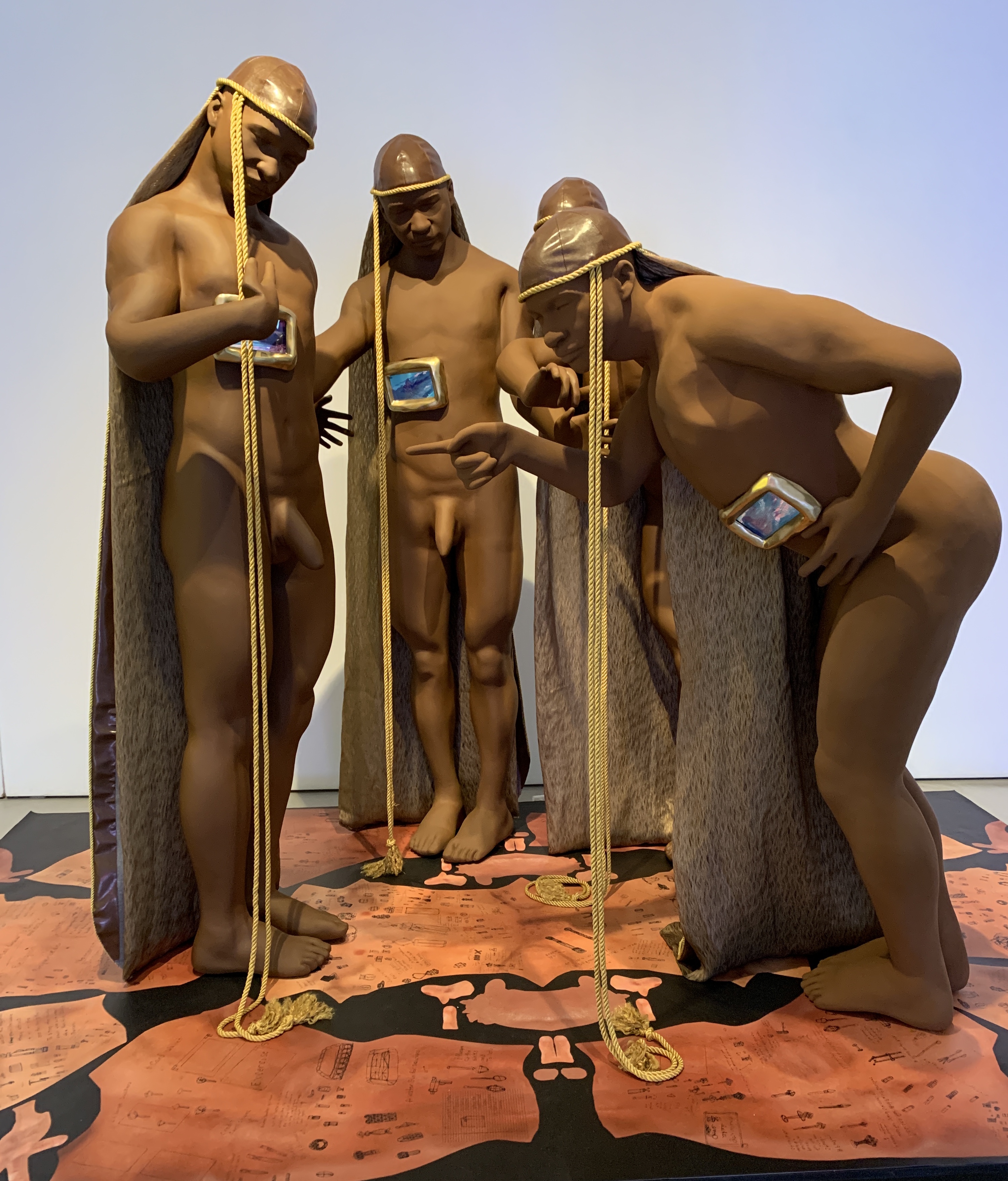 Our friend Sari and her adolescent son Sam met us afterwards for a stroll through the Whitney Museum, whose current offerings introduce museumgoers to Japanese-American artist Ruth Asawa (I first learned about her from the postage stamp in her honor; see “Untitled” above), African-American painter Henry Taylor, and in the project room Indigenous sculptor Natalie Ball. I never know what’s going to catch my eye at the Whitney.