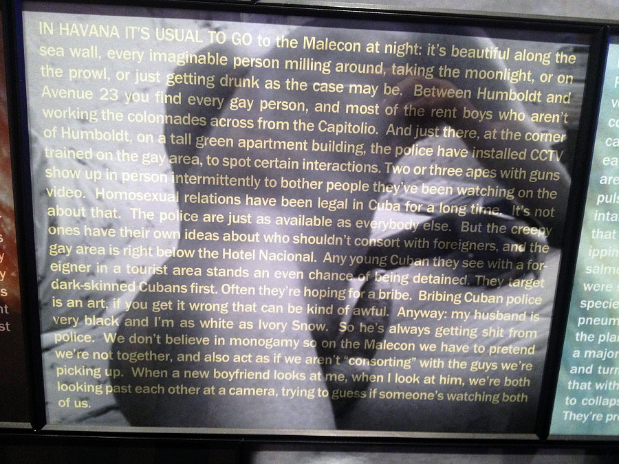 The first piece that caught my eye was a collection of backlit photos by Gary Indiana. I was surprised and amused that both Adam and Vincent thought this was the same artist famous for the LOVE design seen everywhere (including the much-photographed public sculpture around the corner from my house, at 55th Street and Sixth Avenue — that would be Robert Indiana) rather than the prolific, dyspeptic novelist, commentator, and former Village Voice art critic.