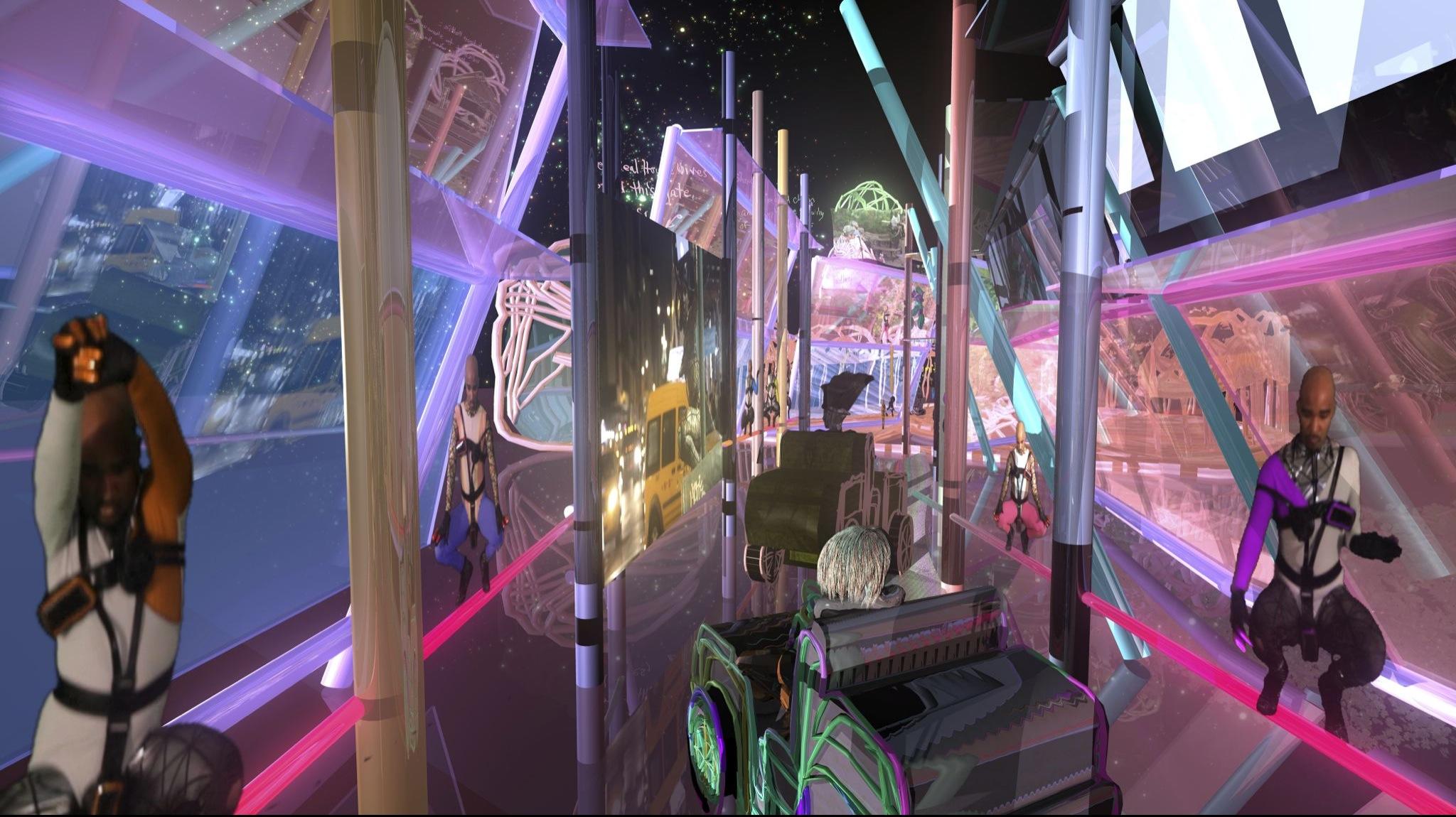 I’m not any kind of savvy connoisseur of contemporary painting, so the preponderance of work on the 4th floor (many by female artists, many in vaguely Abstract Expressionist mode) made little impression on me. The work on the 3rd floor, chosen by Stuart Comer (primary curator of media and performance at MOMA), was much more to my taste. My very favorite piece in the Biennial was Jacolby Satterwhite‘s dazzling HD video/animation Reifying Desire 6: